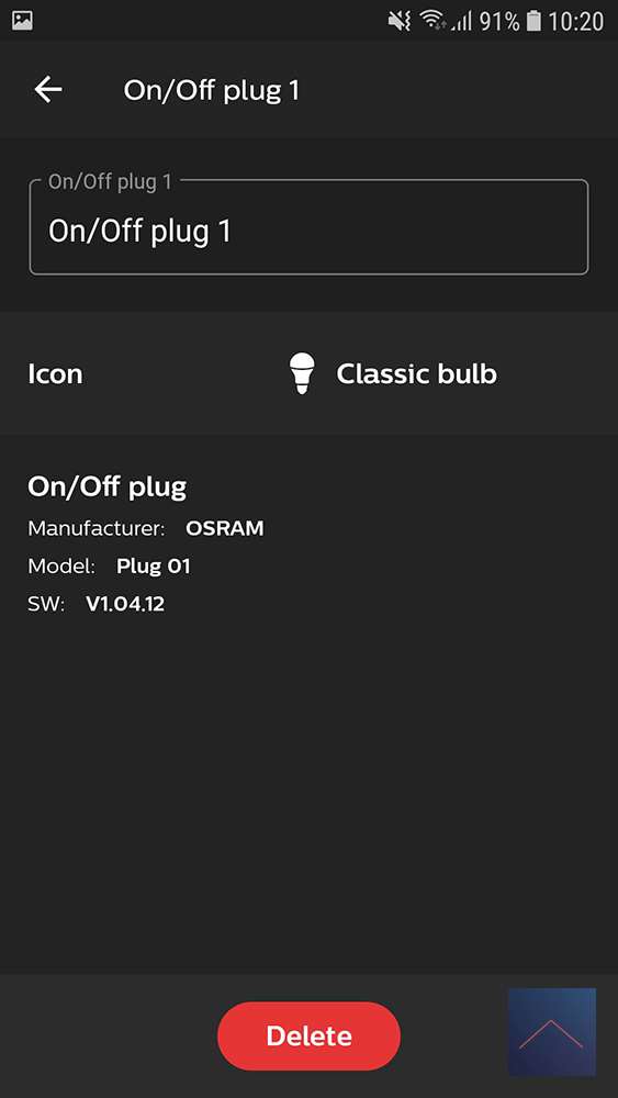 We hebben ook een Osram power switch en deze werkt ook via het Zigbee protocol, hiermee kun je de stroom toevoer naar bijvoorbeeld een lamp aan- of uitzetten. Maar je kunt er natuurlijk ook andere apparaten op aansluiten en in een routine zetten. Het toevoegen van de Osram power switch gaat in 1 x goed. Je voegt hem toe door in de App naar de Accessory setup te gaan en de power knop op de switch in gedrukt te houden: