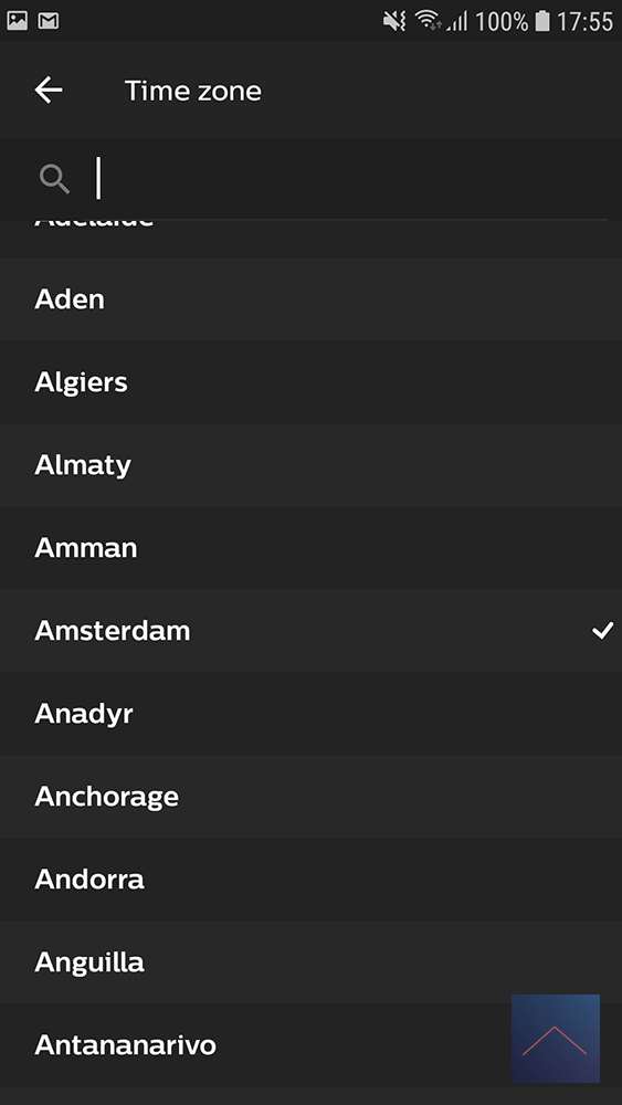 Bij Time zone selecteer je de hoofdstad van het land waar je bent om te zorgen dat je Bridge in de juiste tijd zone staat. Dit was bij mij al automatisch op Amsterdam gezet, dus heb je eigenlijk alleen nodig als je de Bridge naar een andere tijdzone verplaatst.