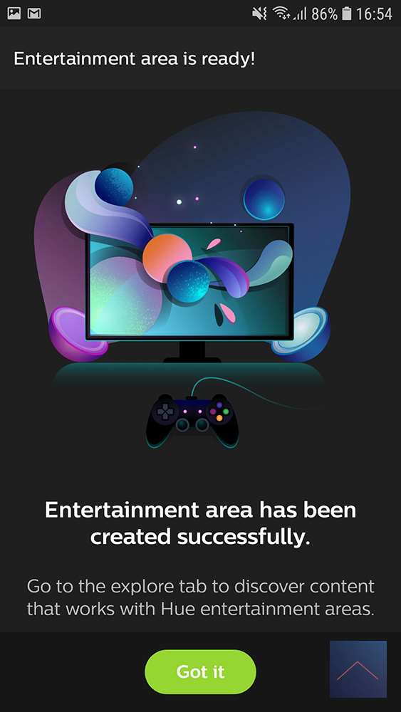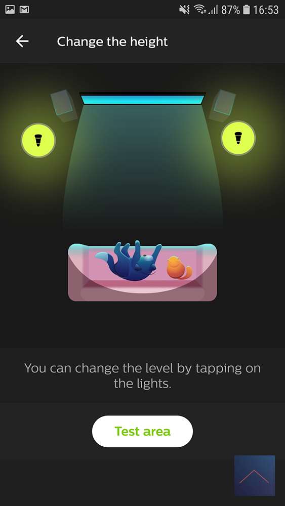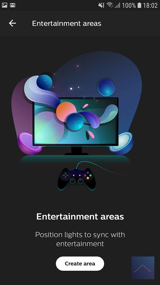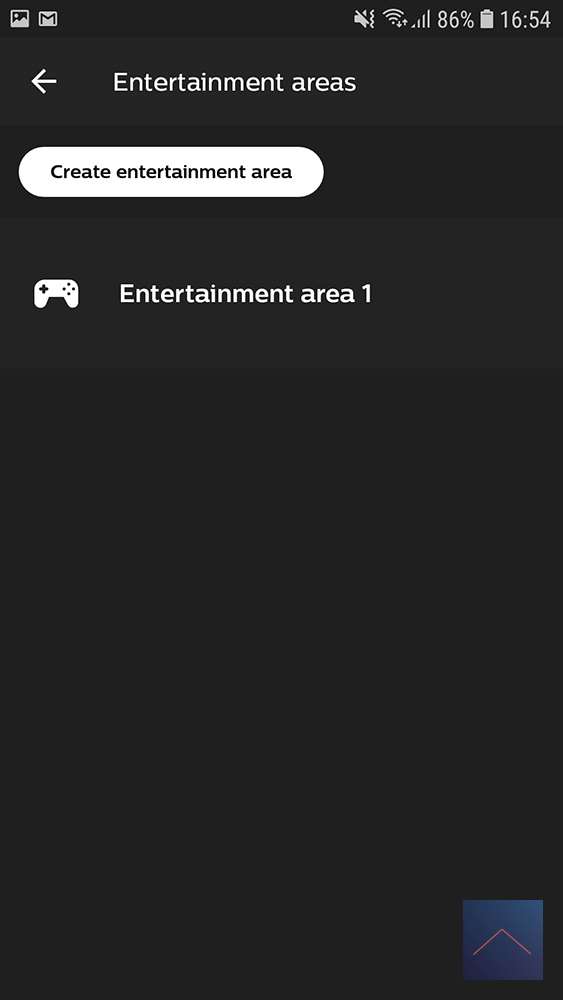 Hier kun je een ruimte aanmaken waar je een entertainment systeem hebt staan. Hierbij kun je bijvoorbeeld je Philips TV met licht koppelen aan de lampen die er naast hebt staan.