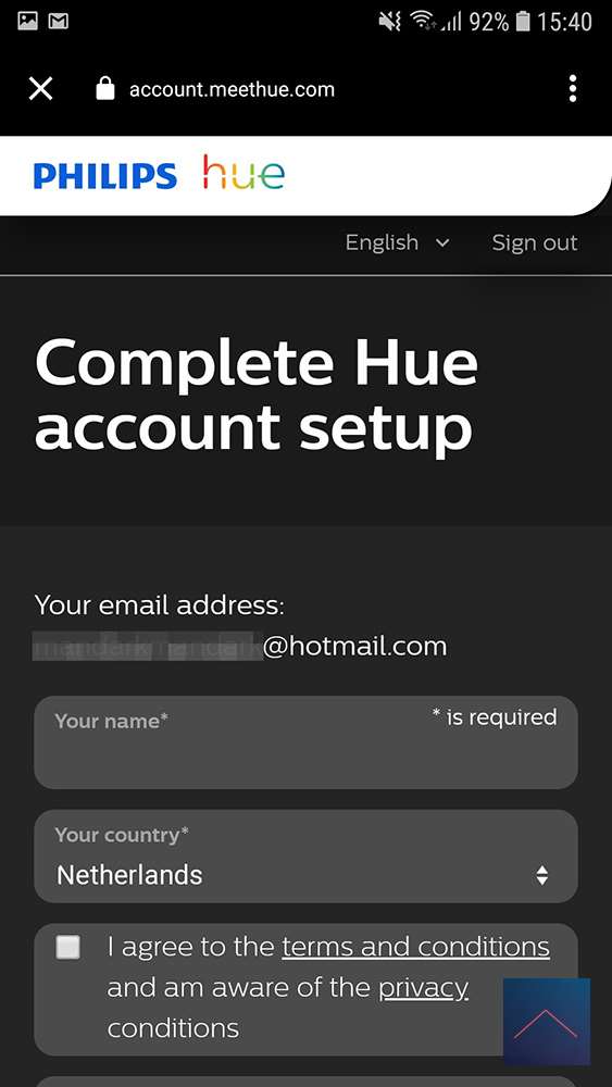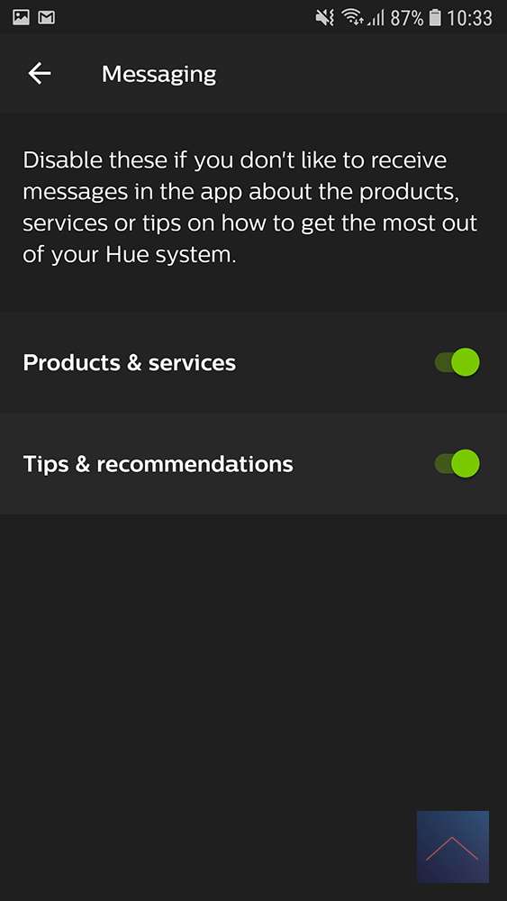 Messaging preferences – Hier kun je aangeven of je informatie wilt ontvangen over Philips Hue producten & service en Tips & aanbevelingen.