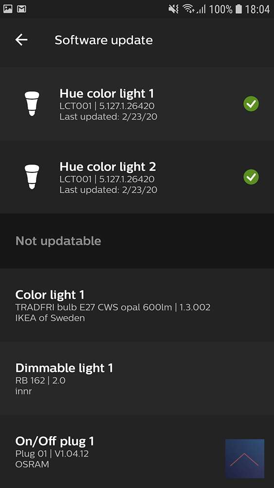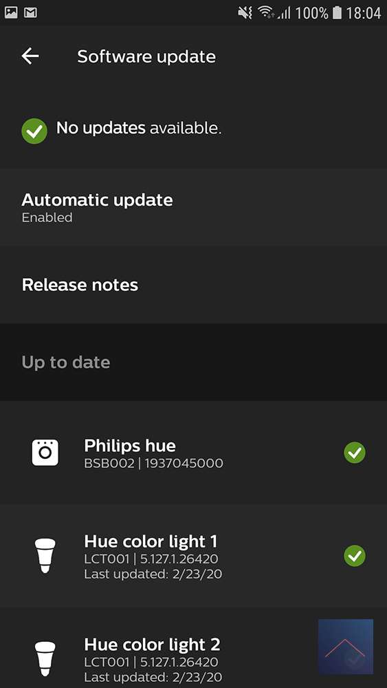 Hier kun je zien of je Bridge en je lampen van de laatste software software zijn voorzien. Is dit niet het geval kun je het hier updaten en je kunt kiezen of je het automatisch update wilt aanzetten.
