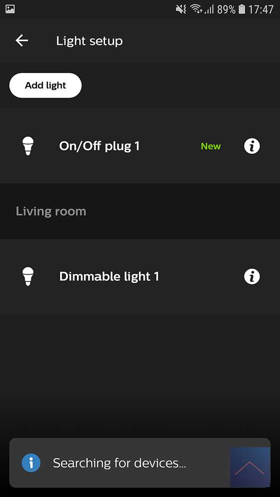 Dit is een overzicht van al je lichten en kun je lichten toevoegen. Door middel van de i knop bij een licht kun je de info van de lampen bekijken en ook verwijderen.