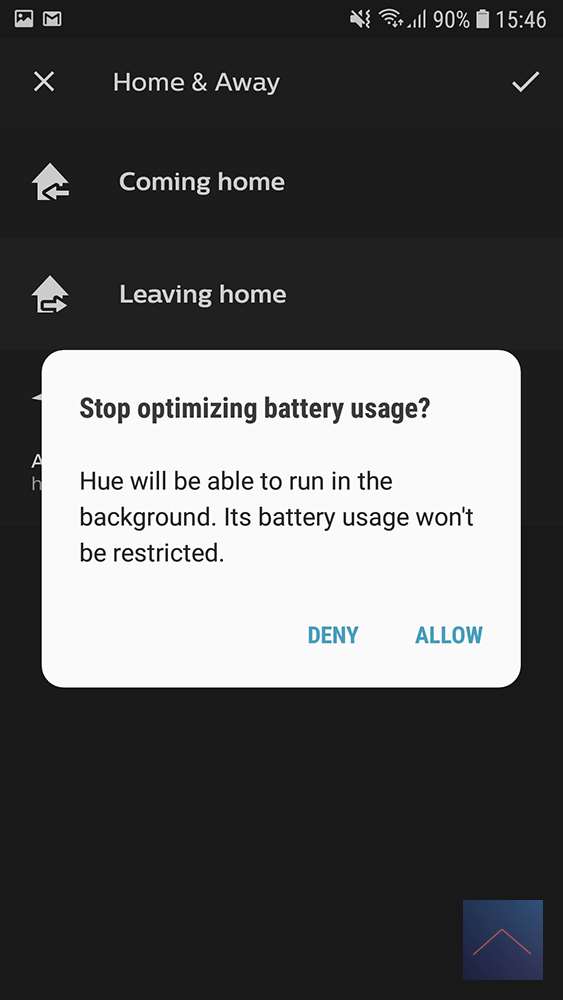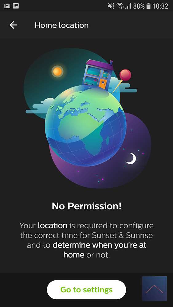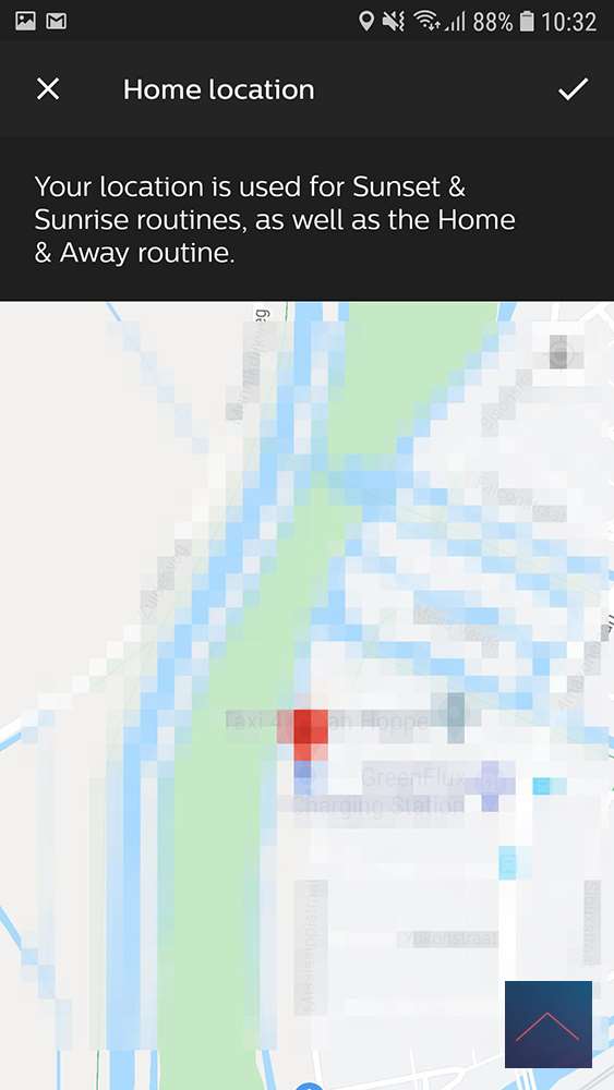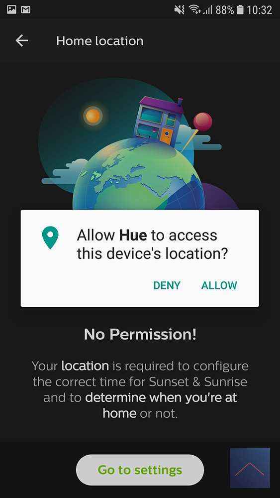 Home location - Hier kun je aangeven dat de Hue Bridge jouw telefoon locatie mag gebruiken om te bepalen waar de Bridge staat.