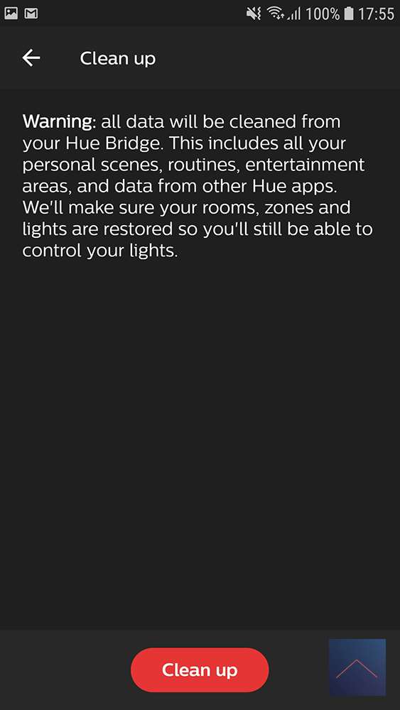Met Clean up kun je alles in 1 x weg gooien wat je hebt ingesteld behalve je Rooms, Zones en je lampen.