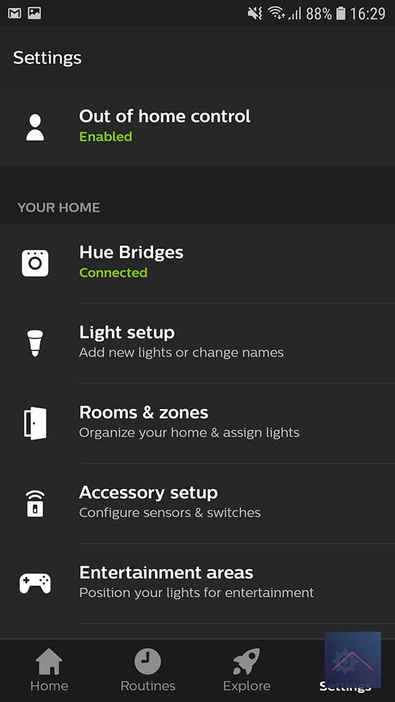 Deze hebben we aangezet voor de Routine “Home & Away”, maar hierdoor kunnen we nu ook de Hue App buiten het huis gebruiken en waar je maar bent je lichten bedienen (hiervoor heb je natuurlijk wel een internet connectie nodig:)