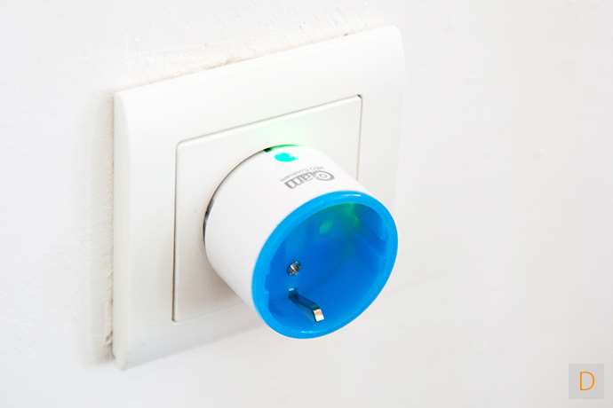 Hij heeft een blauwe rand aan de voorkant (welke niet kan oplichten). Hij lijkt overigens erg op de Fibaro Wall Plug.