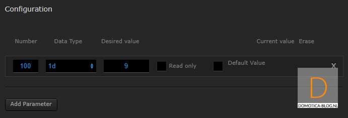 Deze Qubino heeft de mogelijkheid om 2 extra schakelaars aan te sluiten. Helaas is dit geen kwestie van plug 'n play. Je zult eerst de module moeten toevoegen op de normale manier. Hierna moet je parameter 100 op 9 zetten. Hiermee geef je aan dat ipv de standaard bewegingsmelder een binaire schakelaar kan worden aangesloten. Verwijder hierna de module weer uit de HC2 en voeg hem weer opnieuw toe. Nu zie je een extra schakelaar verschijnen op het dashboard.