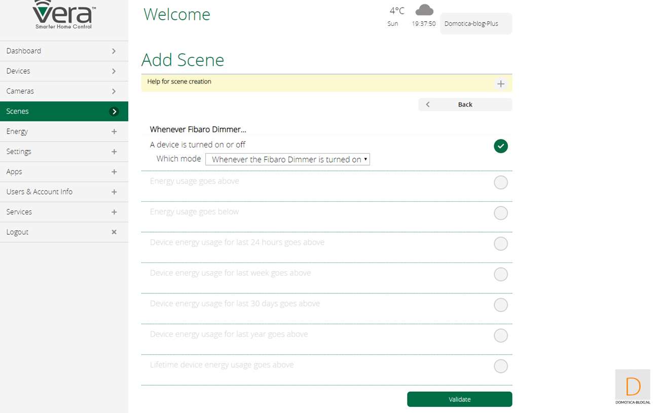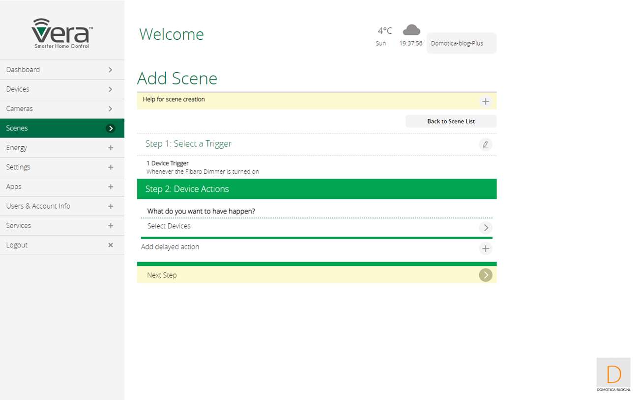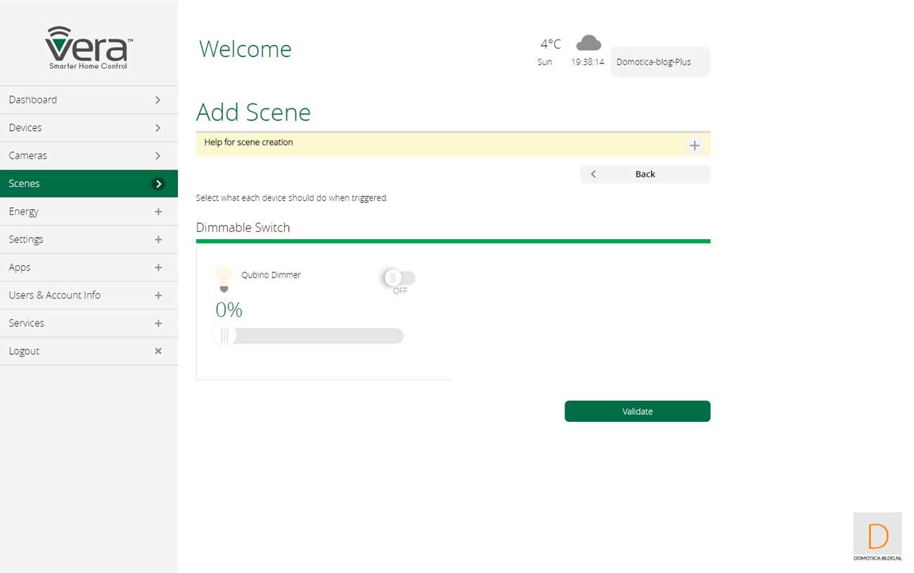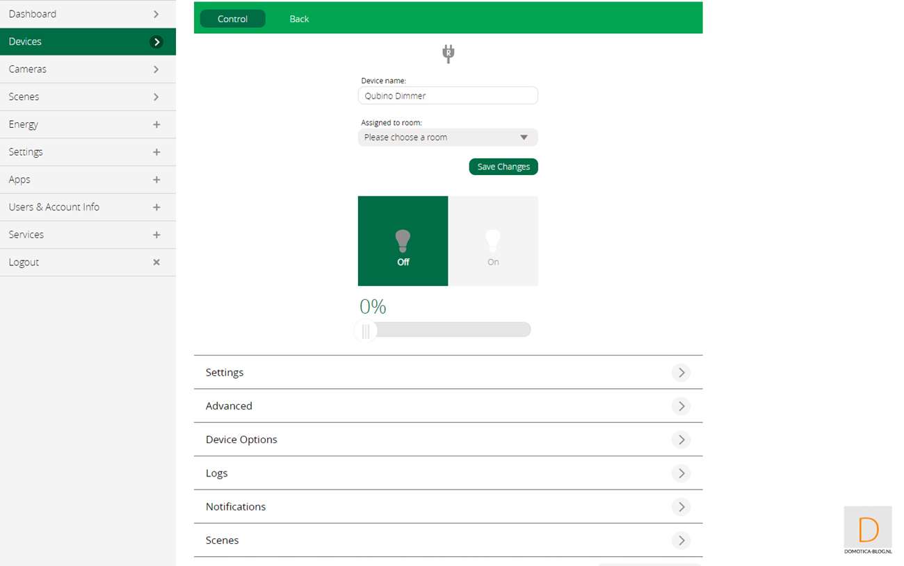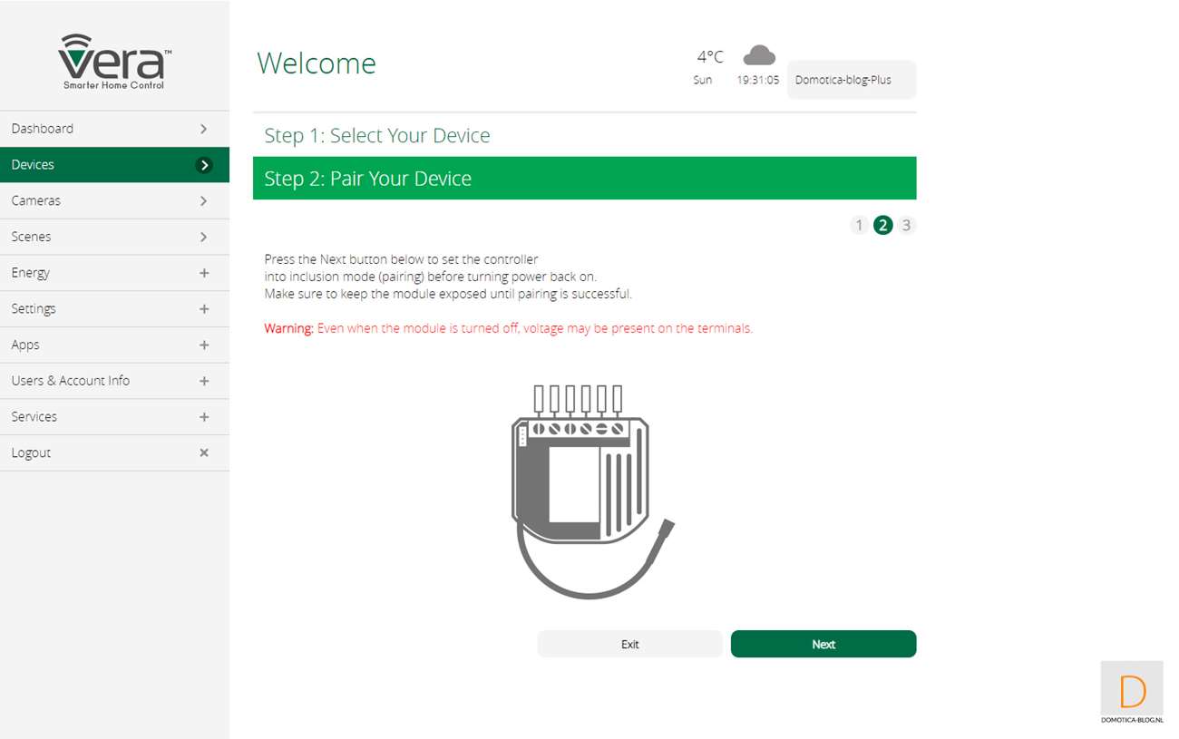 Volgende controller waar we de module op gaan testen is de Vera. Als eerste log je in op de Vera en ga naar je apparaten gedeelte. Vervolgens klik je op "add device" en zoek je hem op Qubino Dimmer op. Hij werd netjes gevonden bij de apparaten. Hierna is het kwestie van hierop klikken en de diversen stappen te volgen. Als het aftellen is begonnen voorzie je de dimmer van stroom. Hij wordt dan automatisch gevonden. Mocht dit niet het geval zijn druk dan 3x op de toevoegen knop aan de voorkant van de module. Hij werd hierna netjes gevonden en toegevoegd en zie hem verschijnen op het dashboard.