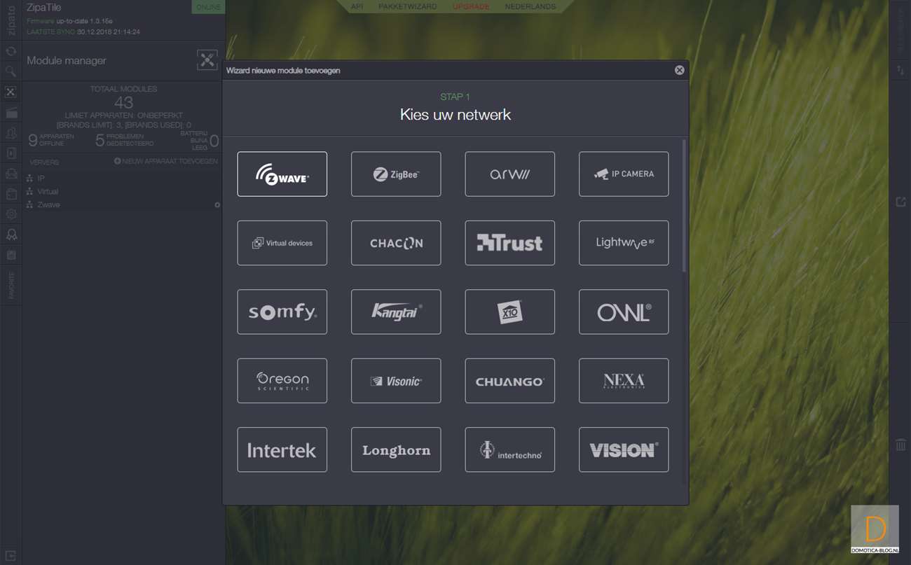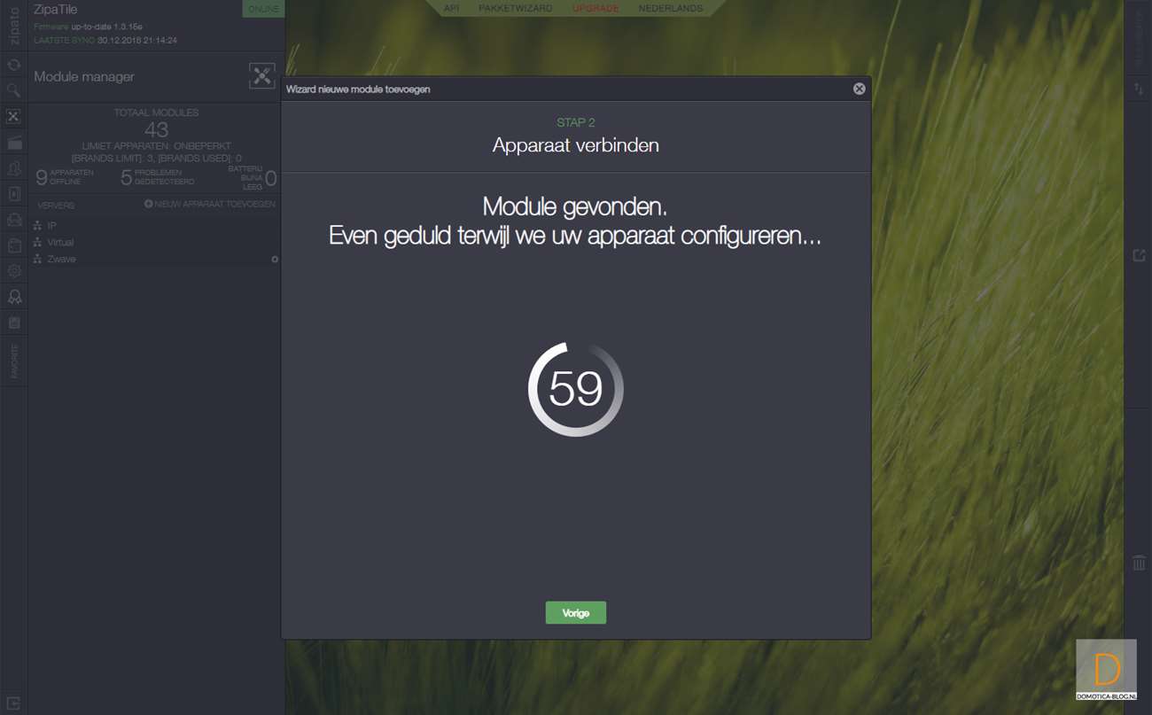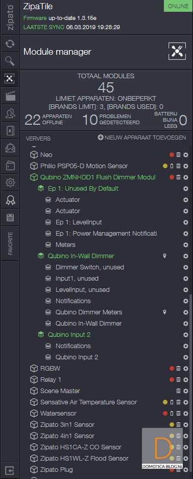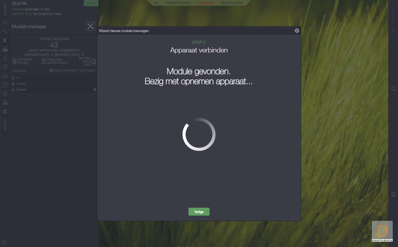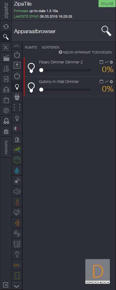 De module wordt netjes herkend door de ZipaTile en zie een aan/uit schakelaar een dimniveau, het totaal verbruik en het huidige verbruik. Helemaal compleet dus.