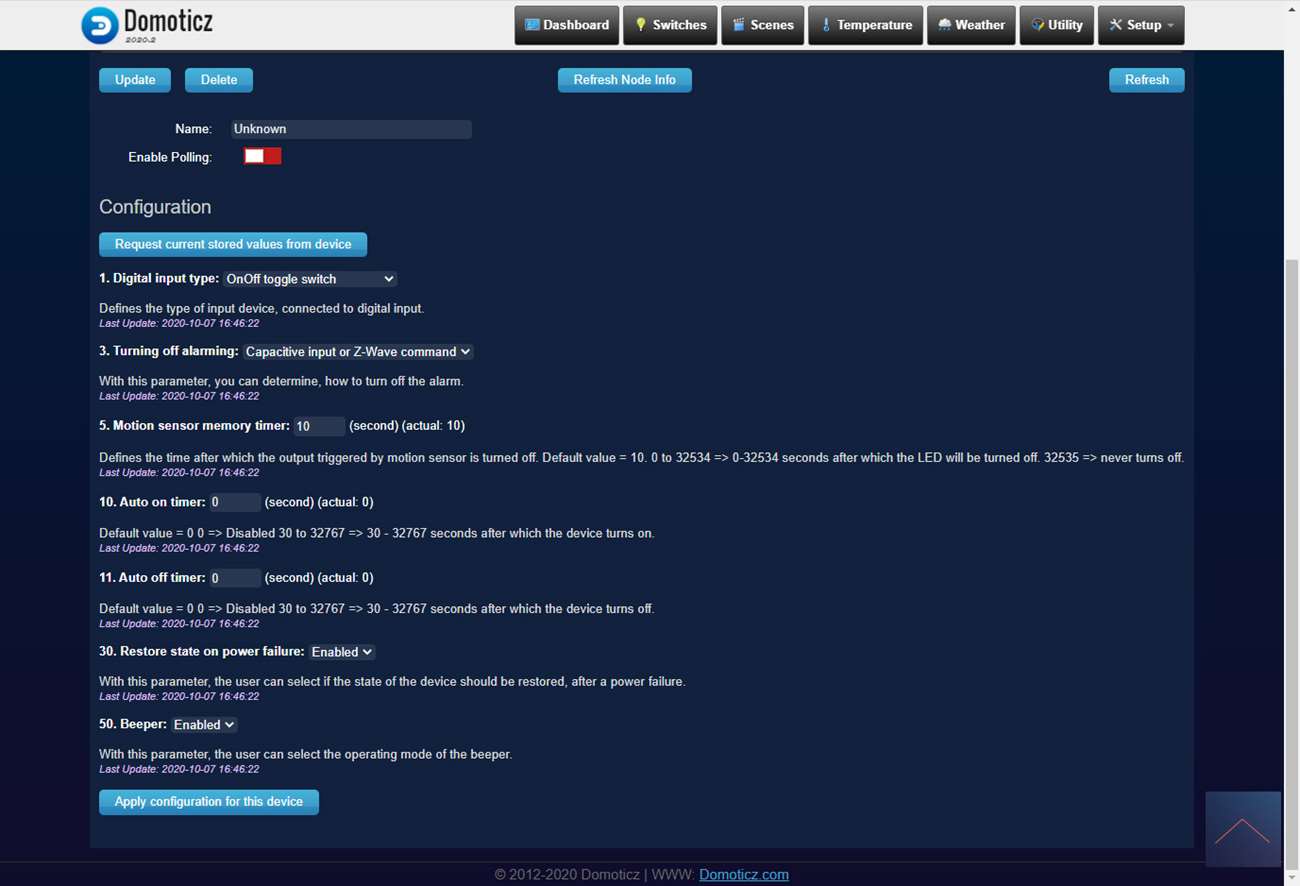 We gaan deze schakelaar ook weer installeren via Domoticz. De eerste stap is om de Luxy te installeren op de plek waar we hem willen hebben. Zorg dat je een inbouwdoos hebt van minimaal 50mm diep, Qubino adviseert zelfs 60mm. Er is ook een blauwe (N) draad nodig deze kun je halen vanuit een stopcontact. Niet geheel onbelangrijk zorg dat natuurlijk de stroom eraf is voordat je überhaupt aan de slag gaat.