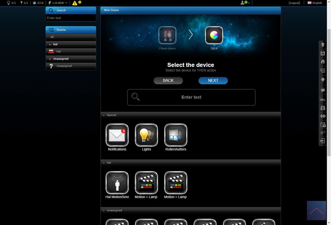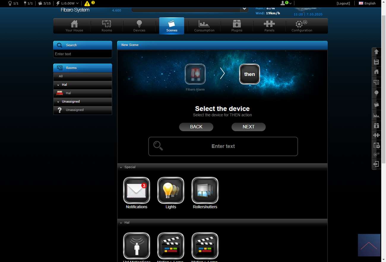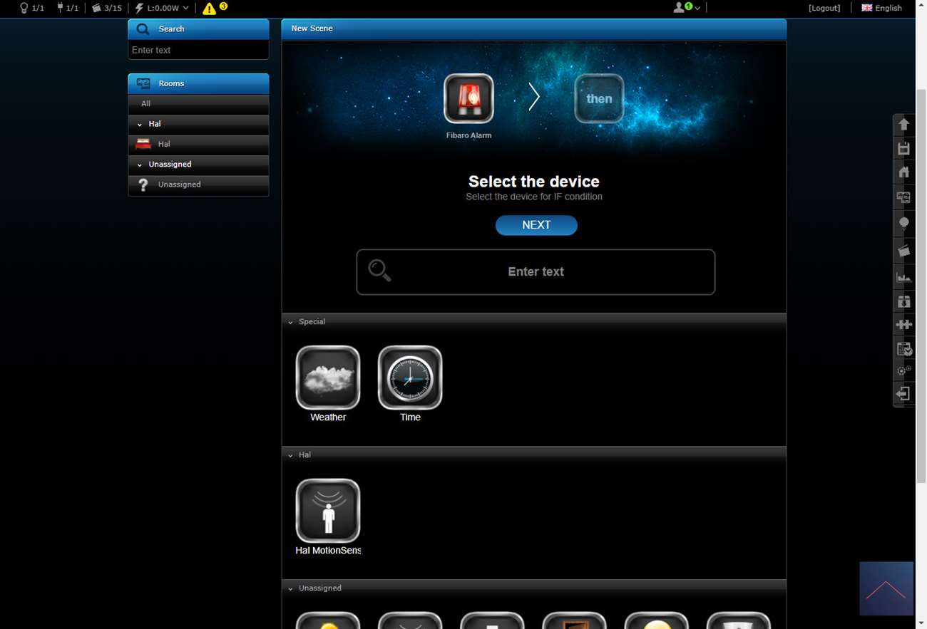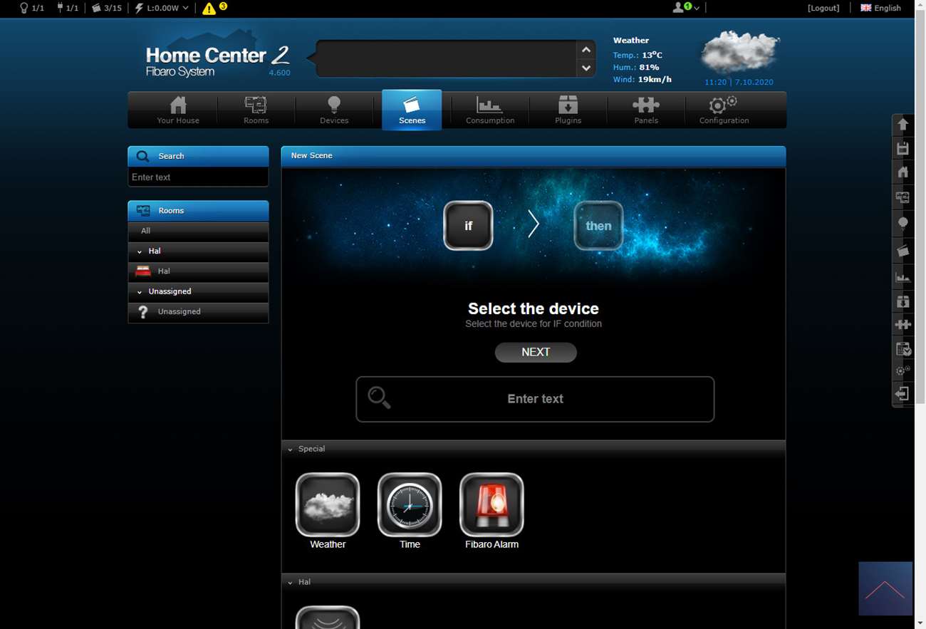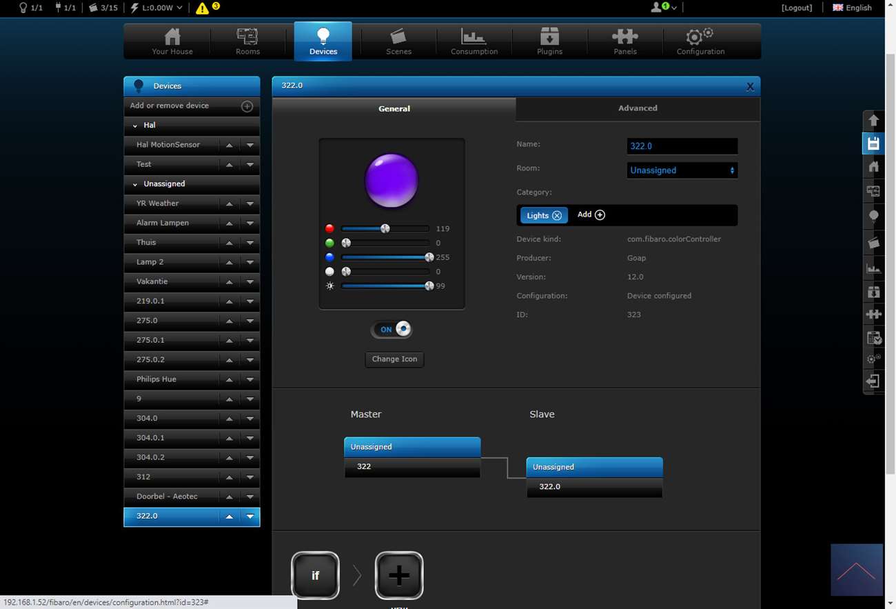 Als alles is aangesloten zet je de stroom erop en kan je het toevoegen starten. Om dit voor elkaar te krijgen log ik in op de HC2 en ga ik naar mijn apparaten.