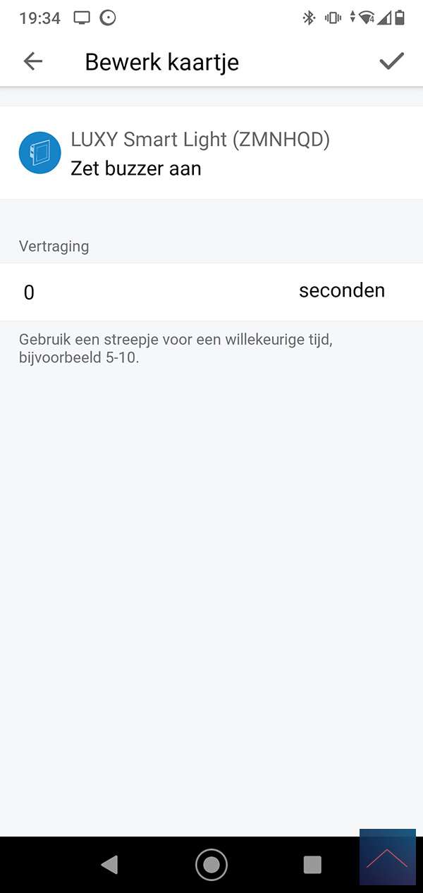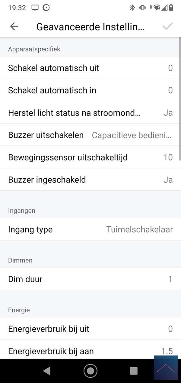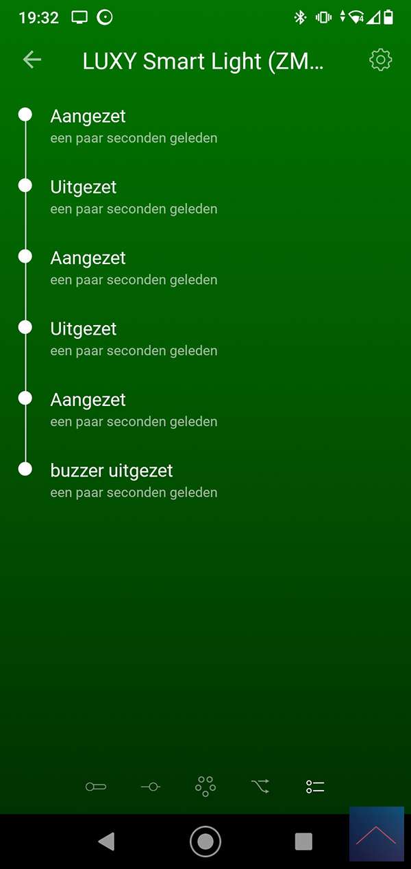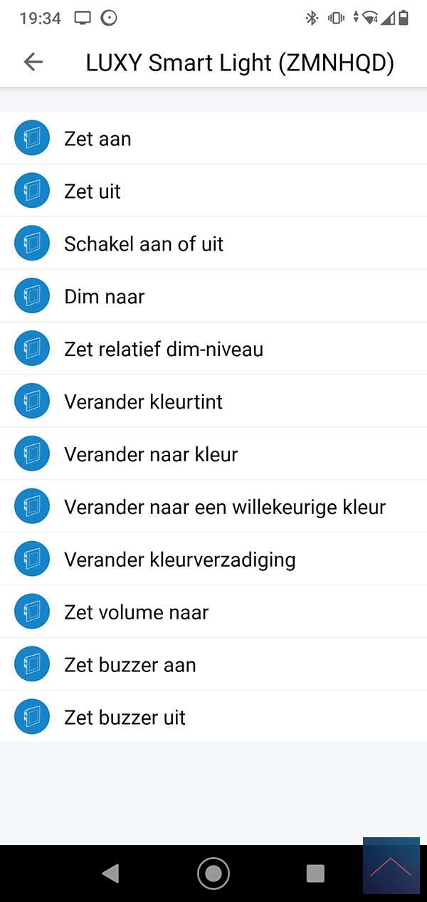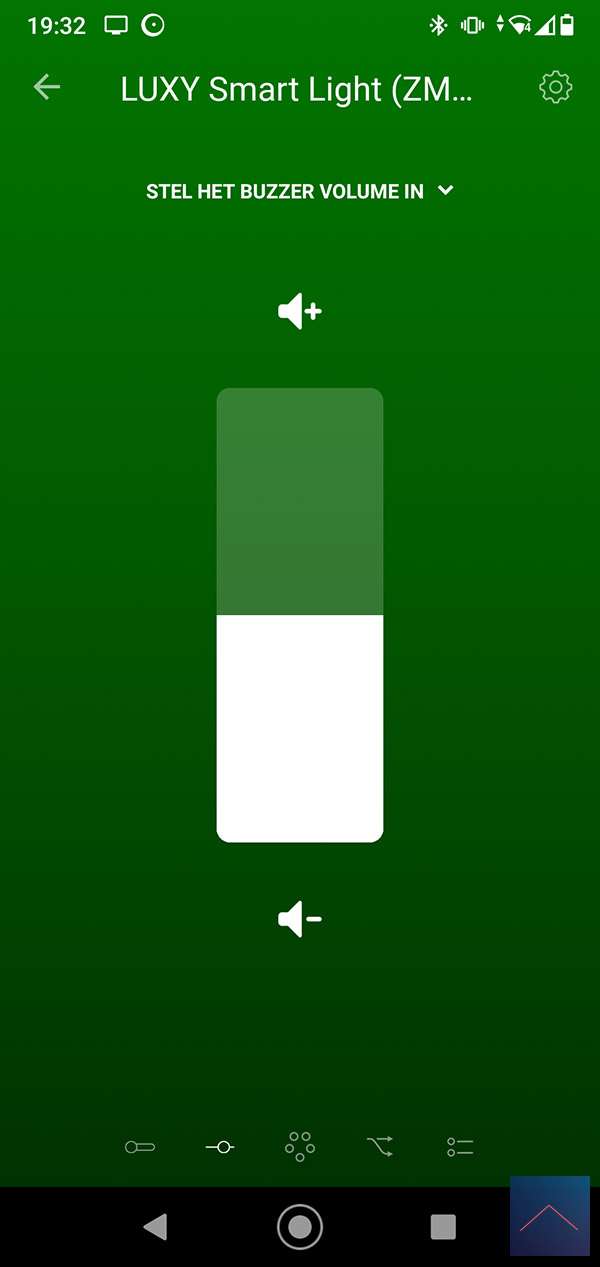 Hij werd netjes toegevoegd en ik zie een aan-/uitschakelaar, de dimmer kan de kleuren selecteren en ik kan de buzzer aan-/uitzetten en het volume niveau bepalen. Helemaal compleet dus.