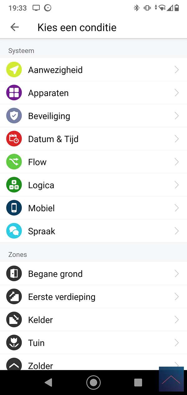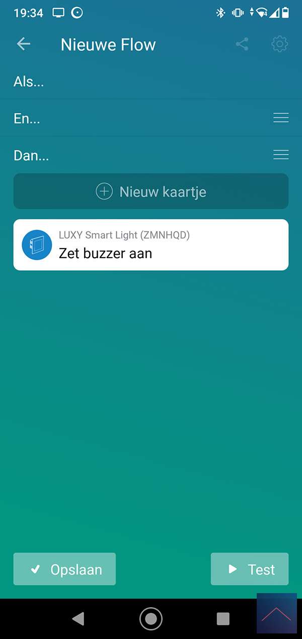 Als we voorbeeld maken we een mini alarmsysteem. Hierbij gebruiken we het activiteiten kaartje in de Homey als trigger. We zeggen als er activiteit in huis is, en we zijn niet thuis, dan moet de buzzer afgaan.