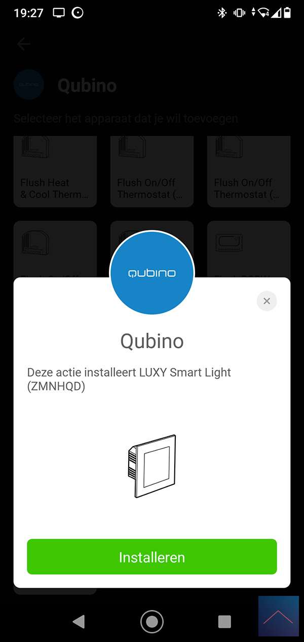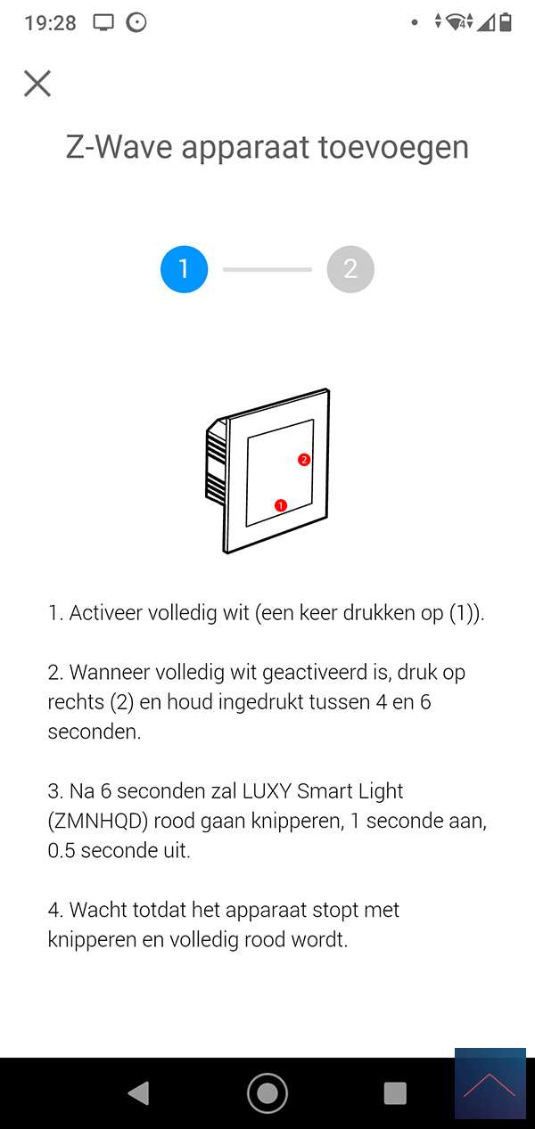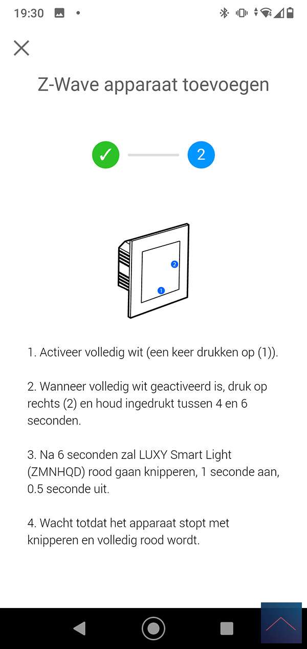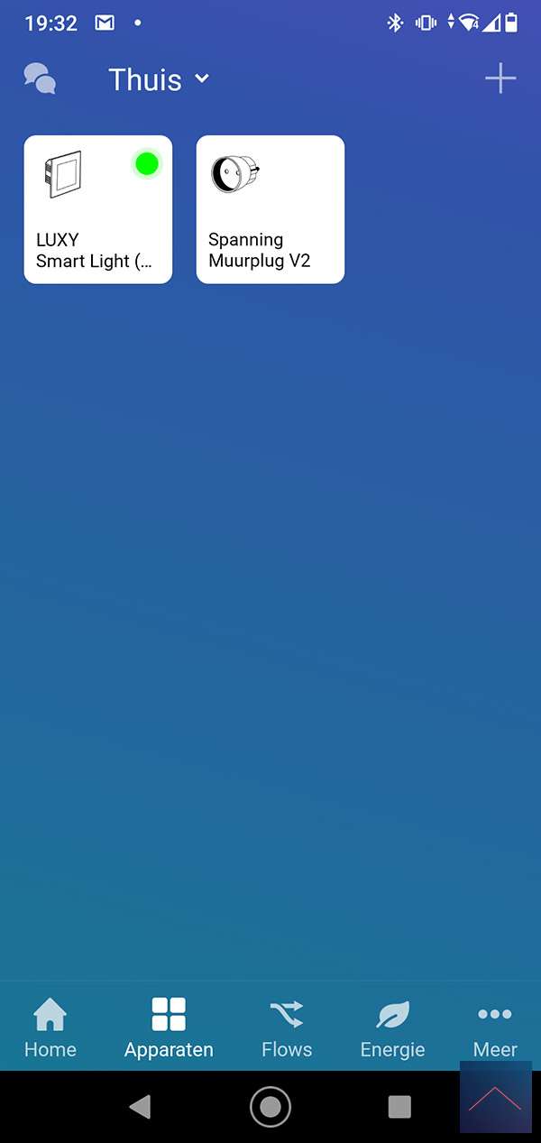Als hij het doet kunnen we inloggen op de Homey en naar je apparaten zijn. Druk vervolgens op het plusje en zoek de Luxy op. Waarschijnlijk moet je eerst de APP installeren, hierna wordt er gevraagd om de Luxy te resetten/te verwijderen. Dit kun je doen door 1x rechts en 1x onderin te drukken op het paneel van de luxy. De "White mode" wordt nu gestart, hou hierna 4 tot 9 seconden de rechter knop ingedrukt. Als je hem los laat zal de LED rood gaan knipperen en hierna oplichten. Ik zie in de Homey APP ook dat hij is gereset. Nu herhalen we het hele verhaal nogmaals om hem daadwerkelijk toe te voegen. De LED zal nu groen oplichten.