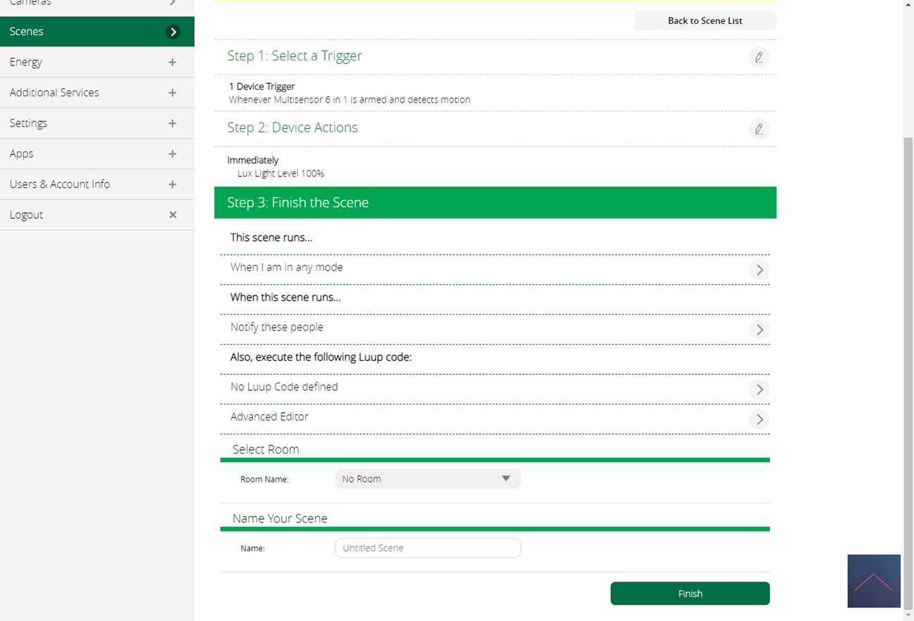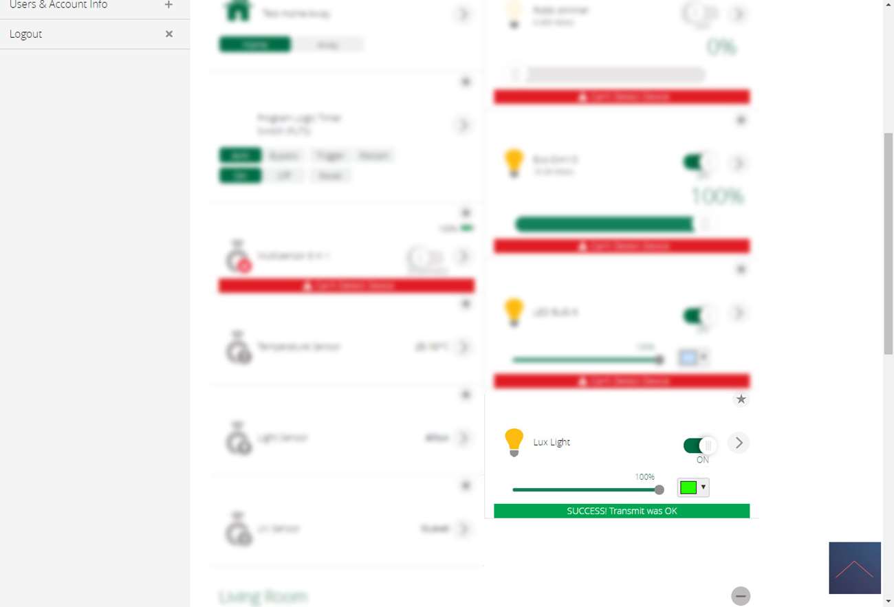 Als de motion "armed" en beweging geeft dan moet de Luxy rood worden.