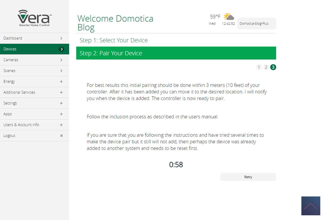 Je kunt het geheel aansluiten via het bijgeleverde schema. Zorg natuurlijk dat je de stroom eraf haalt voordat je aan de slag gaat. Als je hem weer van stroom hebt voorzien kun je beginnen met het toevoegen aan de Vera. Dit kun je doen door in te loggen en naar je apparaten te gaan. Klik vervolgens op "add device" en klik op "generic z-wave" want als je zoekt op Luxy staat hij niet in de lijst. Druk vervolgens een paar keer op next tot je bij het scherm komt dat er gevraagd wordt om de Luxy in leerstand te zetten.