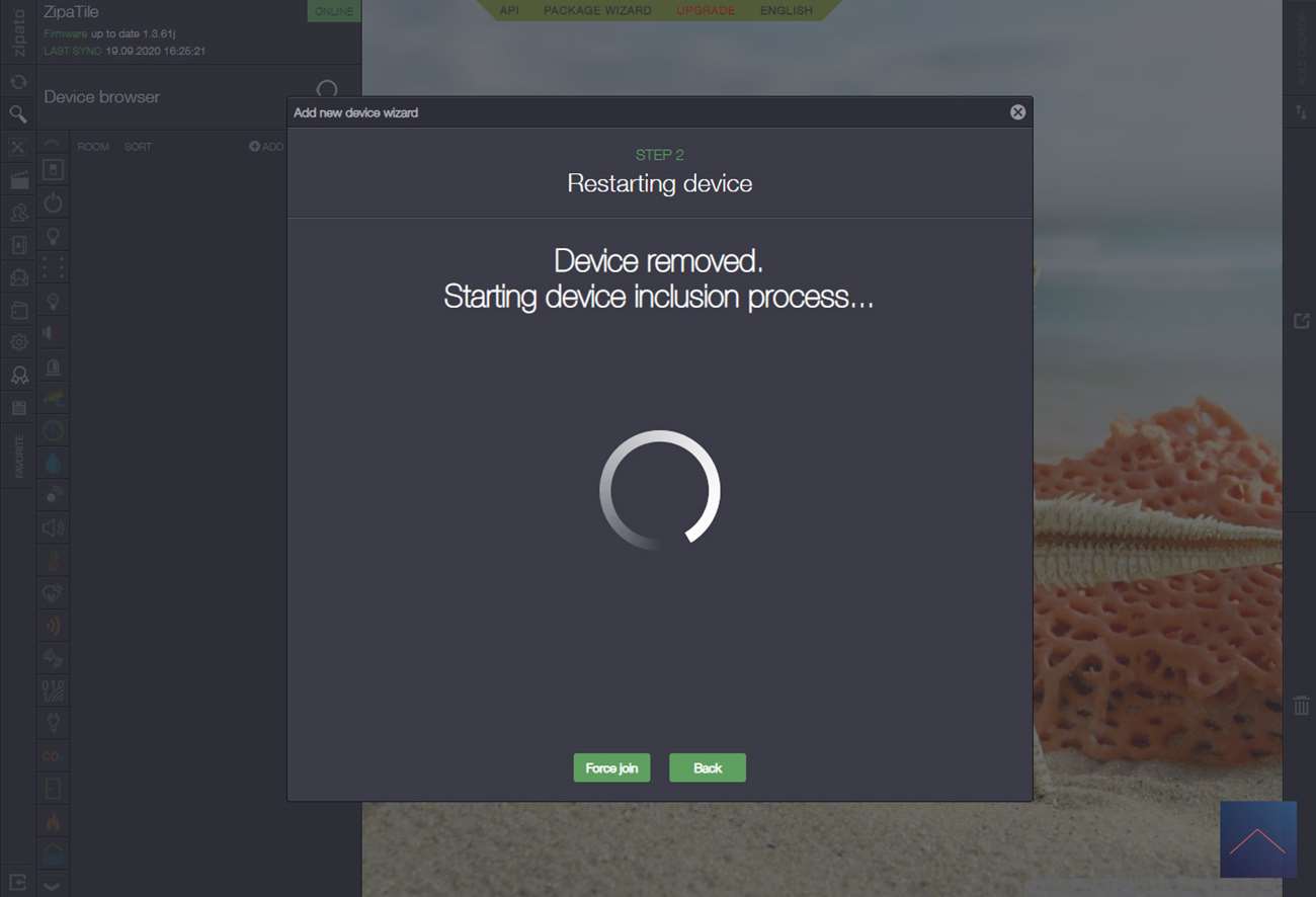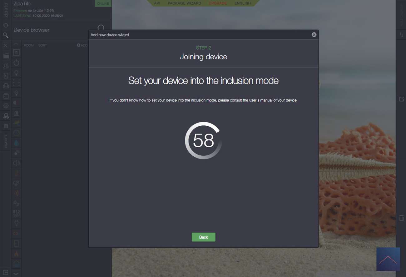 De volgende stap is om in te loggen op de ZipaTile en naar je apparaten te gaan. Klik vervolgens op "add new device" en hierna op Z-wave. De ZipaTile zal eerst vragen om de module te resetten. Dit kunnen we doen door de stroom op de module te zetten en de volgende handelingen uit te voeren: 1x rechter knop (3) indrukken, hierna 1x de onderste knop indrukken (4). De LED zal wit worden en vervolgens moet je de rechter knop (3) 4-9 seconden ingedrukt houden. De LED zal nu groen gaan knipperen en na 10 seconden vol gaan branden. Hierna herhaal je deze actie nogmaals. Als laatste stap moet ik de SDK code invoeren. Deze kan je vinden op de bijgeleverde sticker.