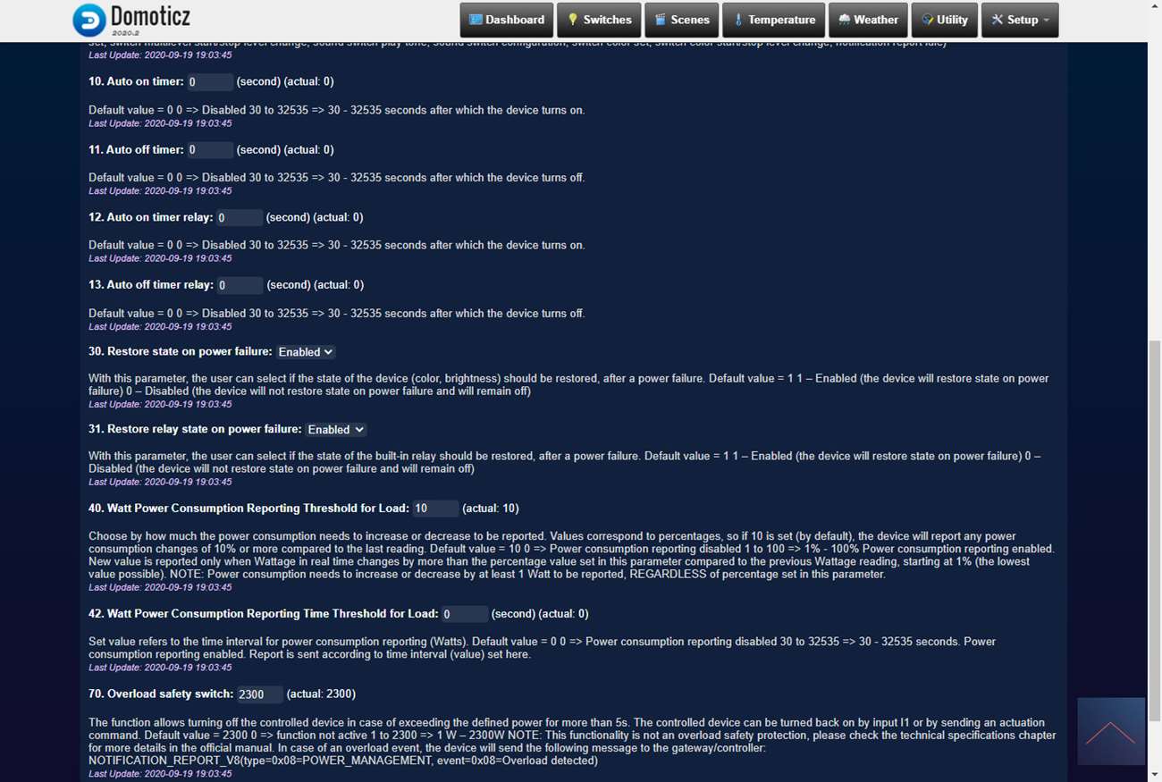 In eerste instantie kon de de relay/aangesloten lamp niet bedienen maar na het installeren van de Beta van Domoticz deed dit het wel.
