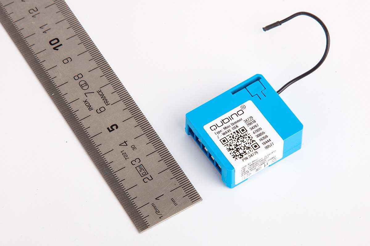 Wat deze dimmer uniek maakt is dat hij super klein is. Zo'n kleine inbouwmodule heb ik nog nooit gezien. Hij is maar 38x33,5x15,5mm en dat is in vergelijking met de concurrentie echt super klein. Het inbouwen wordt hierdoor een stuk gemakkelijker omdat je wat meer bewegingsruimte hebt.