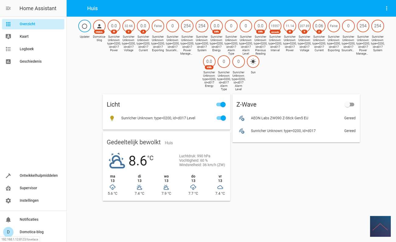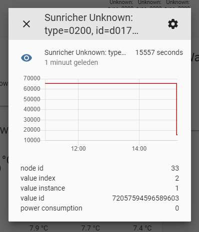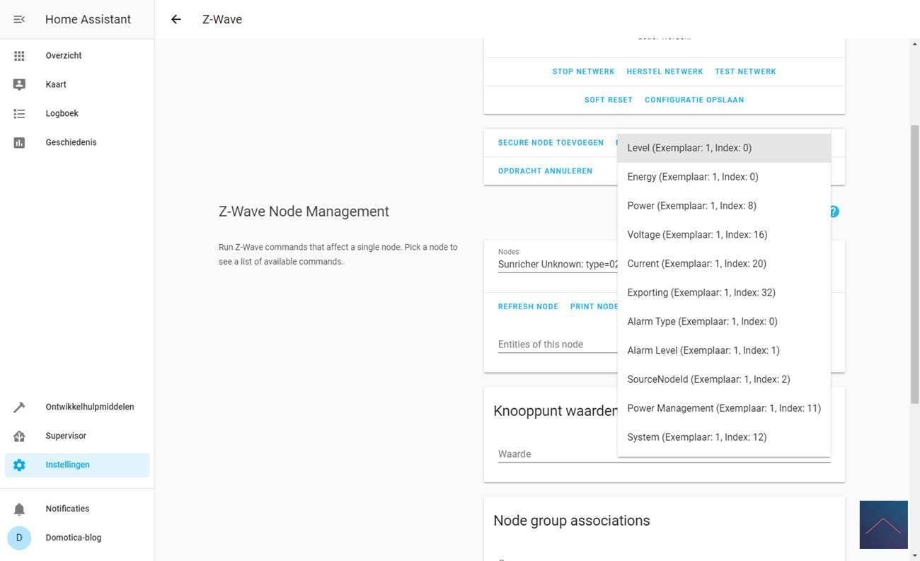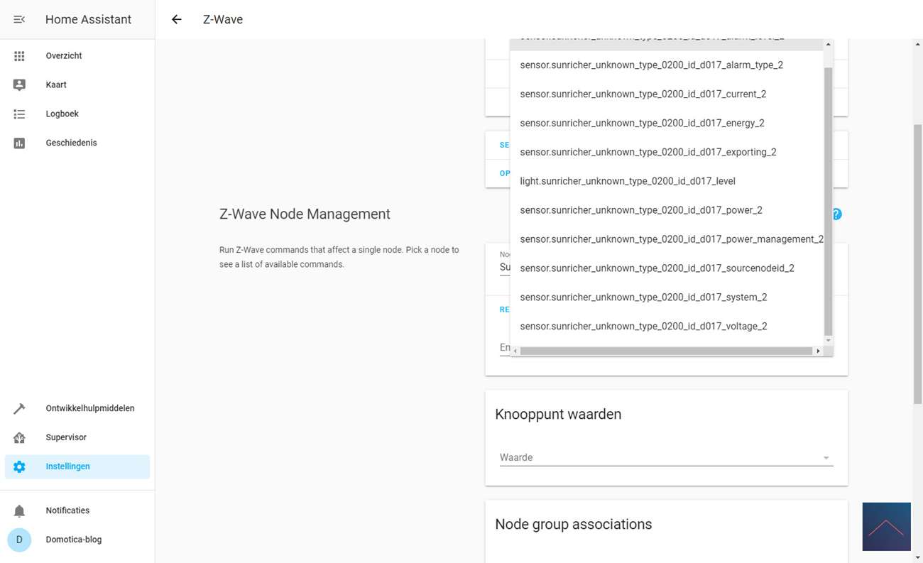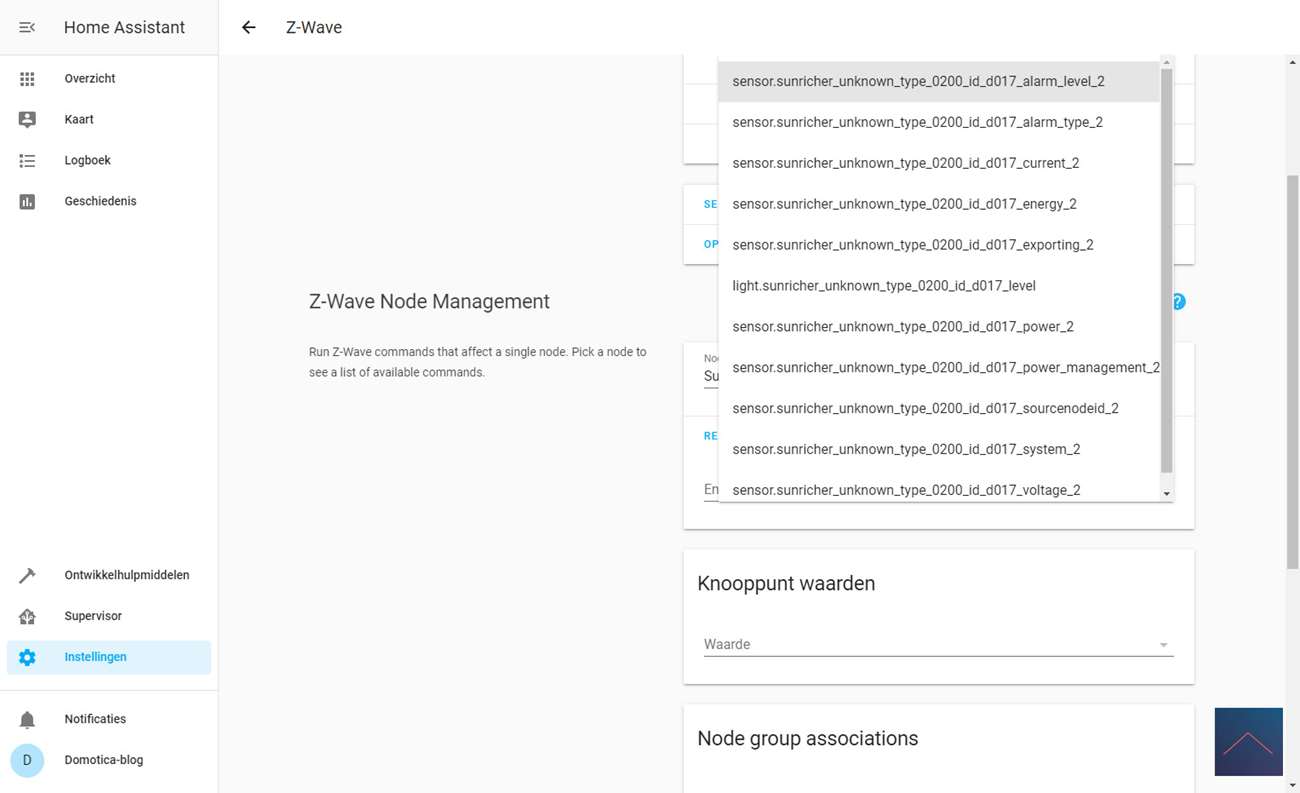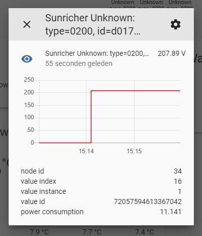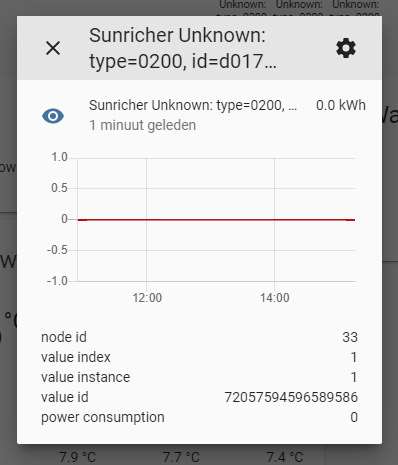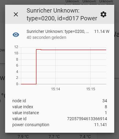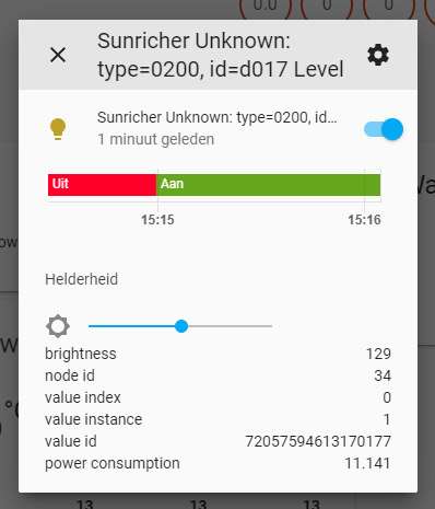 Bij de configuratie van de dimmer zie ik alle instellingen en de juiste nodes. Opvallend wel is dat alles 2x wordt toegevoegd. Dit is geen probleem omdat je gewoon de onjuiste nodes kunt verwijderen. Hij is wel helemaal compleet is zie een dimmer, aan/uit schakelaar, totaal verbruik en huidige verbruik. En nog belangrijker hij reageert goed op mijn commando's.