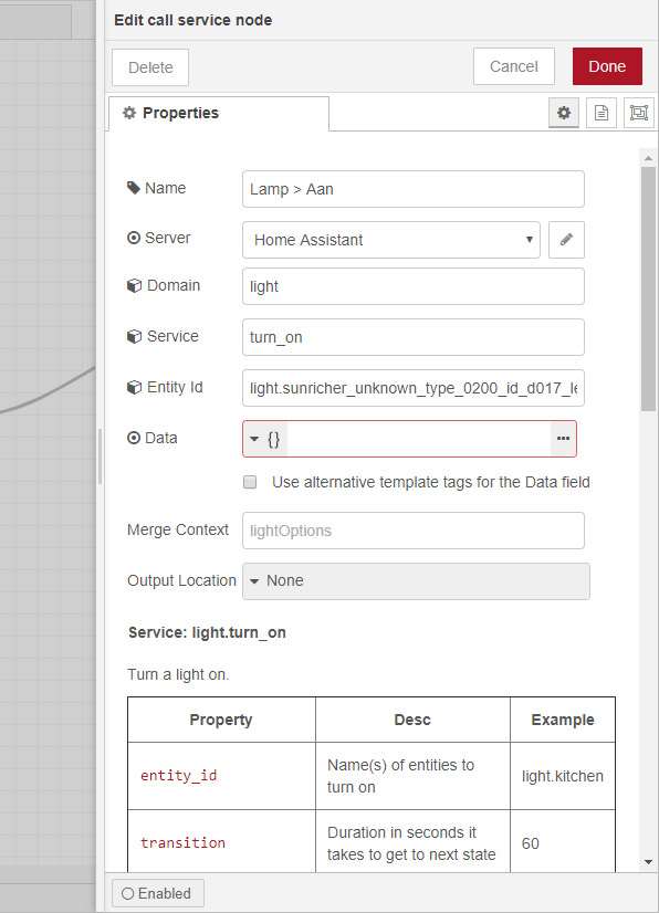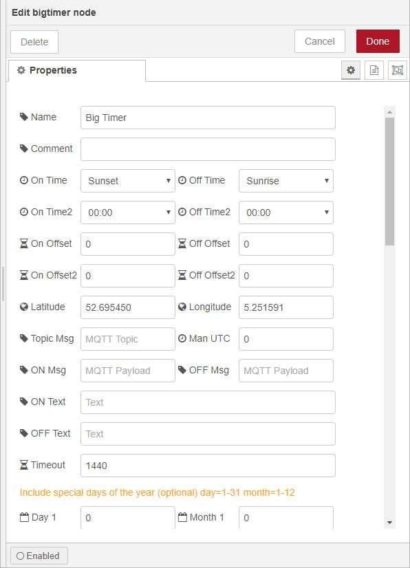 Ik wil graag dat de dimmer na zonsondergang aangezet wordt. Ik gebruik hiervoor de bigtimer als trigger en zet hiermee de dimmer aan.
