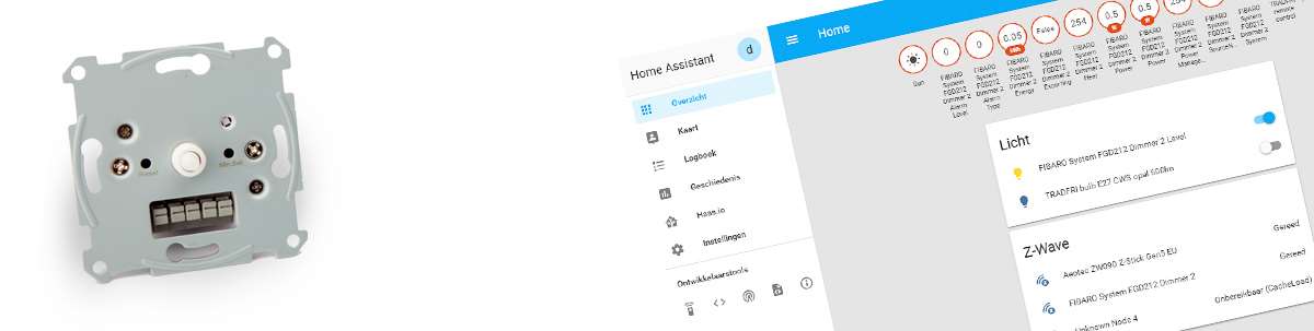 De laatste smart home controller waar we de dimmer gaan toevoegen is Hass. We gebruiken een Aeotec Usb Z-Wave stick om hem toe te voegen. De eerste stap is de oude schakelaar/dimmer te verwijderen. Zorg dat je de stroom uiteraard uitgeschakeld hebt. Er wordt een schema voor een 2 draads en 3 draads aansluiten meegeleverd (met en zonder blauwe draad). Het is aan te beleven om voor de 3 draads variant te gaan. Als je alles goed hebt aangesloten wacht nog even met het terug zetten van de stroom.