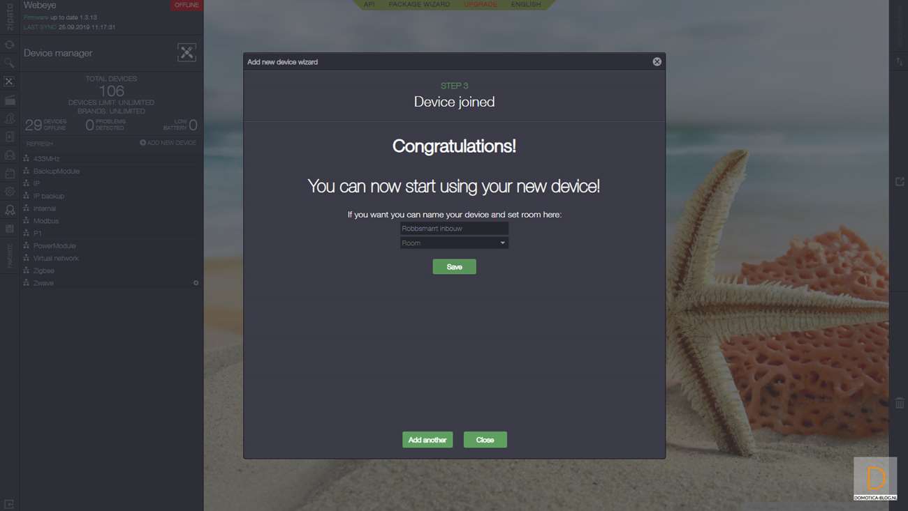 Het is namelijk gemakkelijk om eerst het toevoegen te starten. Dit kun je doen door in te loggen op de Zipatile en naar je apparaten te gaan. Klik vervolgens op "add new device" en op Zigbee. Hierna voorzie je de module van stroom en zal hij worden toegevoegd. De lamp zal een paar keer knipperen om aan te geven dat het toevoegen is gelukt.