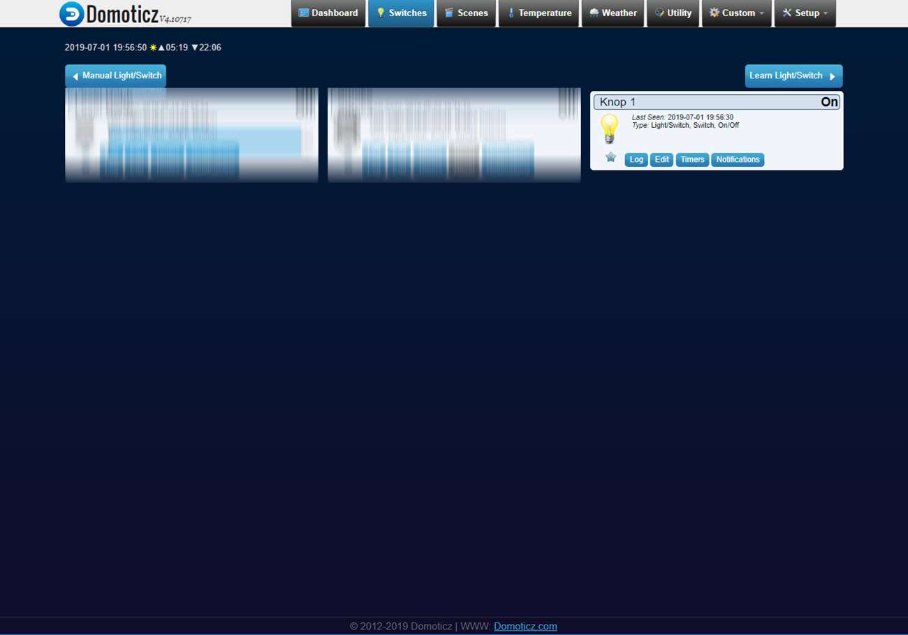 Je kunt het toevoegen starten door op de button beide knoppen 3 seconden tegelijk ingedrukt te houden. Het LEDje aan de voorkant zal oplichten. Als het toevoegen is gelukt zal de LED 6x gaan knipperen. Ik zie hem netjes verschijnen bij mijn apparaten. Opvallend is dat ik een knop en een schuif krijg. Dit is op zich niet erg, omdat hij wel te gebruiken is om regels te maken. Hierbij moet wel vermeld worden dat alleen maar de 1x indrukken werkt.