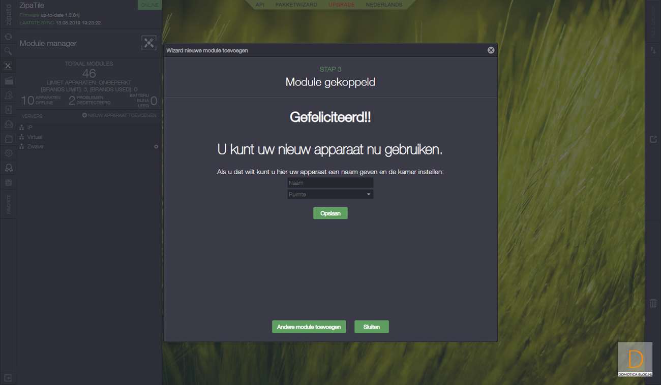 Het toevoegen van deze dimmer aan de ZipaTile moet niet al te veel problemen gaan geven. Hij is tenslotte volgens de standaard Z-Wave protocol gemaakt.