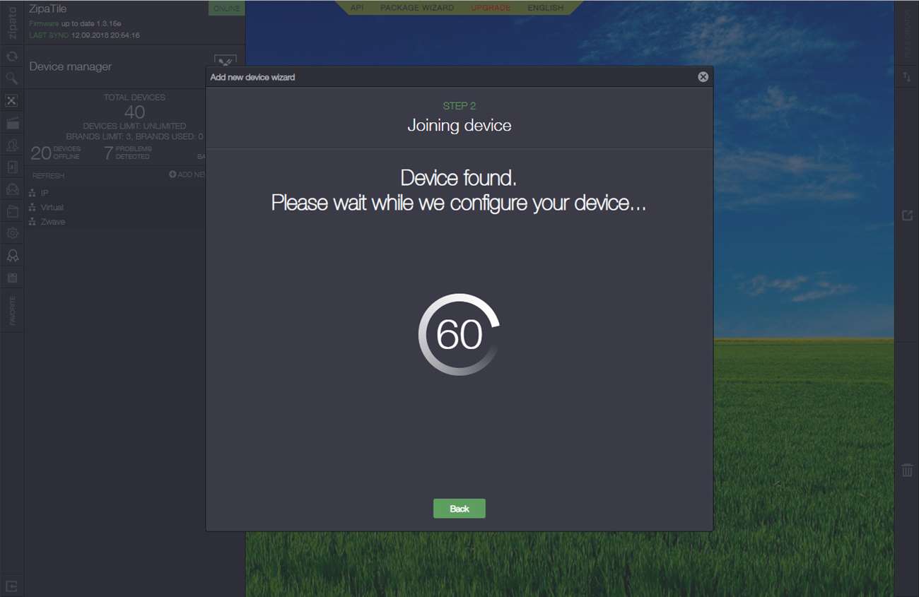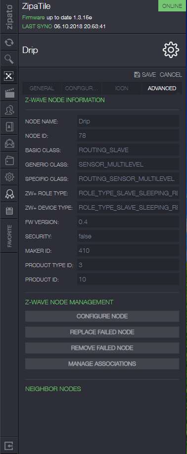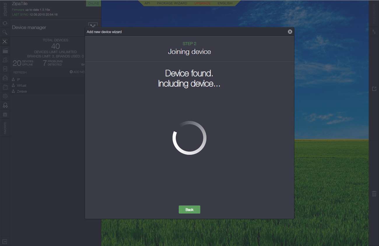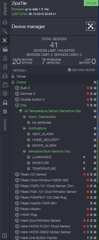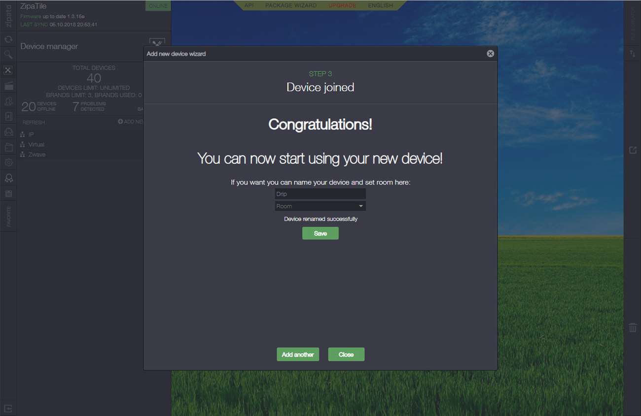 De sensor toevoegen aan de ZipaTile gaat door in te loggen en naar apparaten beheer te gaan. Vervolgens op de toevoegen knop te klikken en Z-Wave te selecteren. Hierna verwijder je de magneet van de sensor. Hij zal dan automatisch gevonden worden. Mocht dit niet het geval zijn dan moet je de magneet 3x heen en weer bewegen over de sensor. Mocht het toevoegen niet gelukt zijn dan zal de LED 5x gaan knipperen. Hij werd bij mij gevonden en toegevoegd en zie een LUX meter, temperatuurmeter, het water lekkage niveau en het batterijniveau. Helemaal compleet dus.