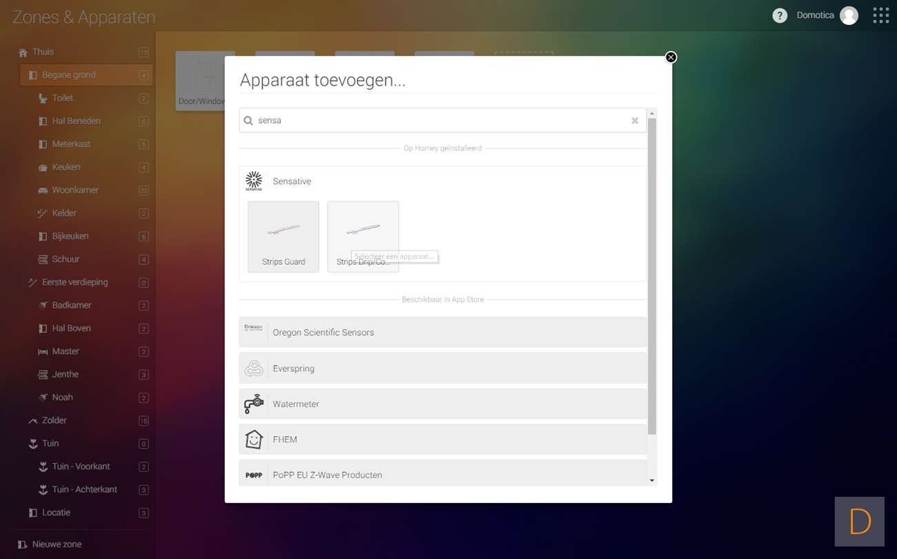 Installatie via de Homey: