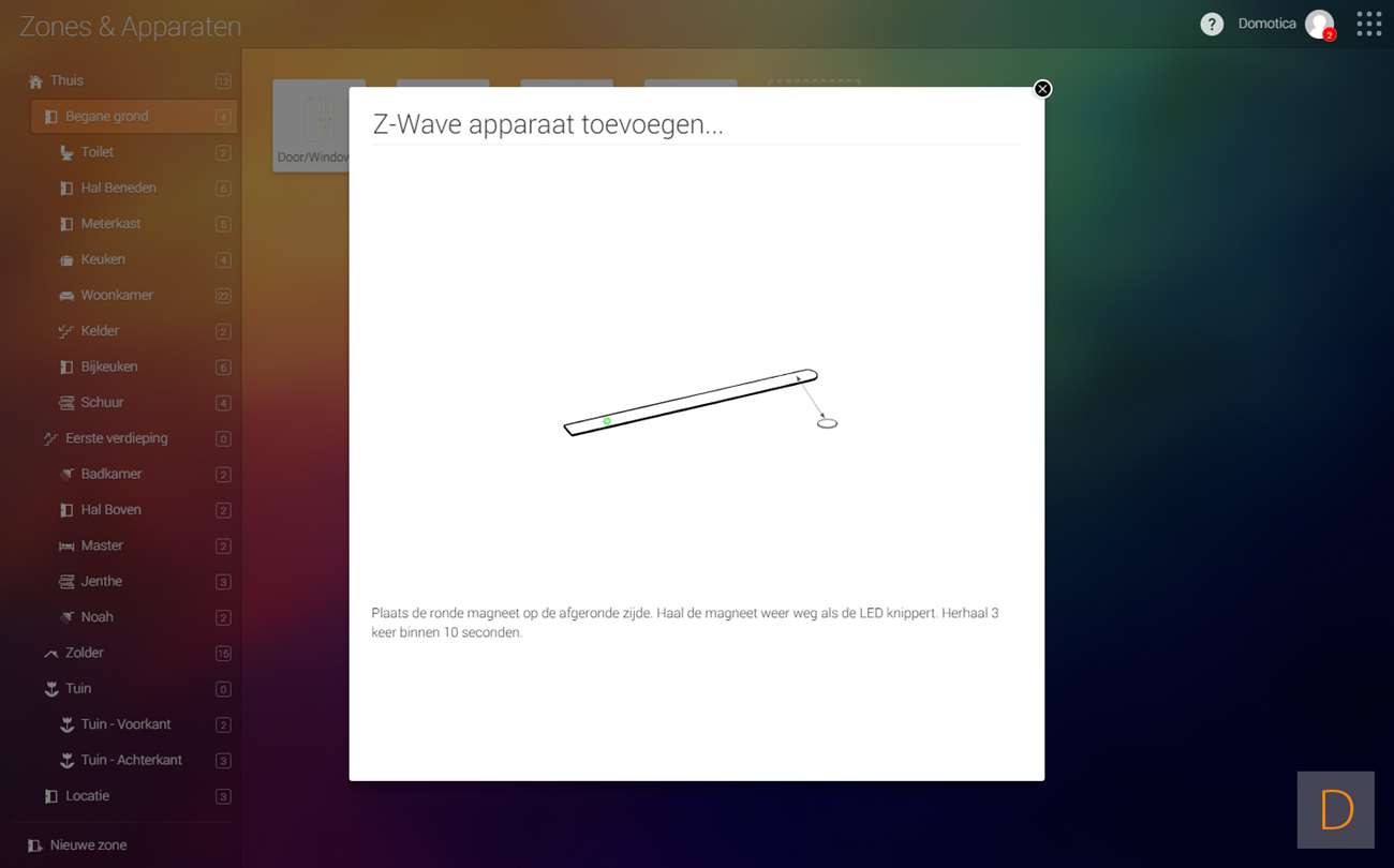 De eerste stap om de comfort toe te voegen is door in te loggen op de Homey. Je gaat hier na naar je apparaten en je klikt op het plusje. Vervolgens zoek je de sensative op. Helaas zag ik de comfort niet staan en probeer ik hem als "generic z-wave" toe te voegen. De sensor wordt gevonden maar niet toegevoegd. Gelukkig heeft Homey een actieve community waar ik de maker van de Sensative APP gevraagd heb of hij de comfort kon toevoegen. Na het aanleveren van de "description XML" heeft hij een support gemaakt. Hierna kon ik hem toevoegen door na het starten van de leermodus door de bijgeleverde magneet 3x over de sensor heen te bewegen. De LED zal 5 sec. aanblijven om aan te geven dat het gelukt is.