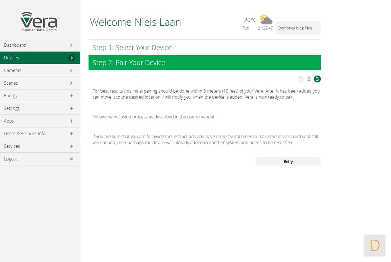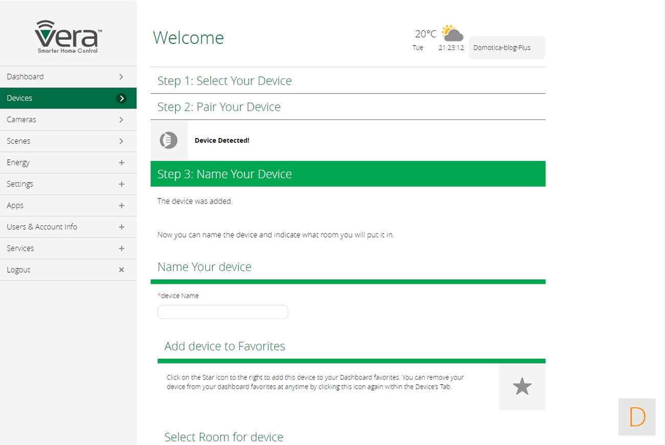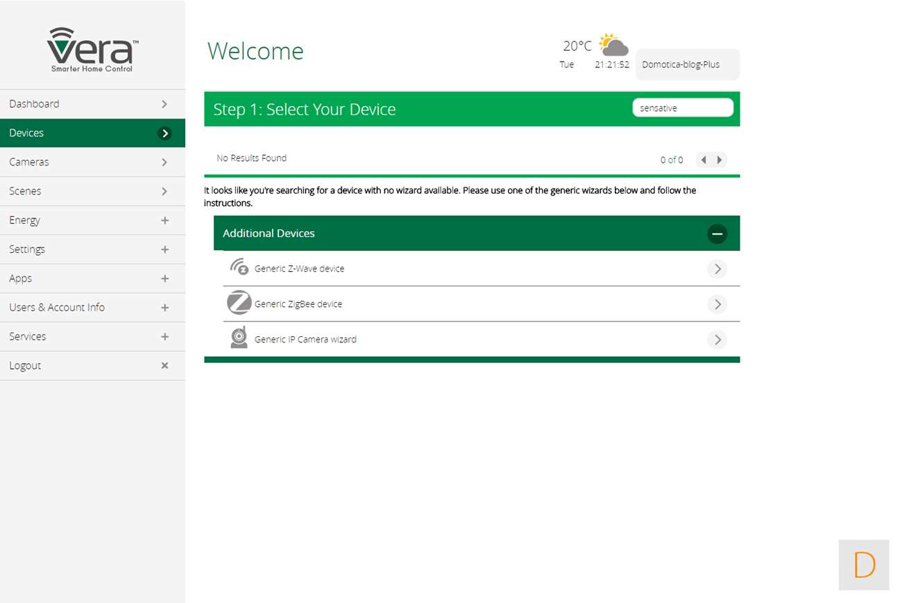 De volgende controller is de Vera. Je moet het toevoegen starten door in te loggen en naar de "devices" te gaan. Vervolgens klik je op "add device" en zoek je de sensor op. Helaas zie ik hem niet in de lijst dus probeer ik hem als "generic z-wave". De controller zal in leermodus gaan. Je moet hierna de magneet bij de sensor verwijderen waardoor hij wordt toegevoegd. De LED zal 1 keer kort oplichten om hierna lang aan te blijven om aan te geven dat het toevoegen is gelukt. Mocht je per ongeluk de magneet al verwijderd hebben dan kun je de sensor ook handmatig in de leermodus zetten door de magneet 3x over de sensor heen te bewegen.