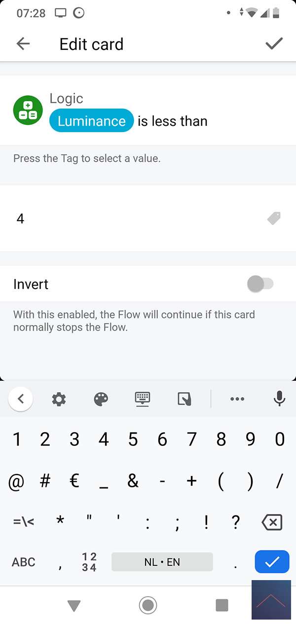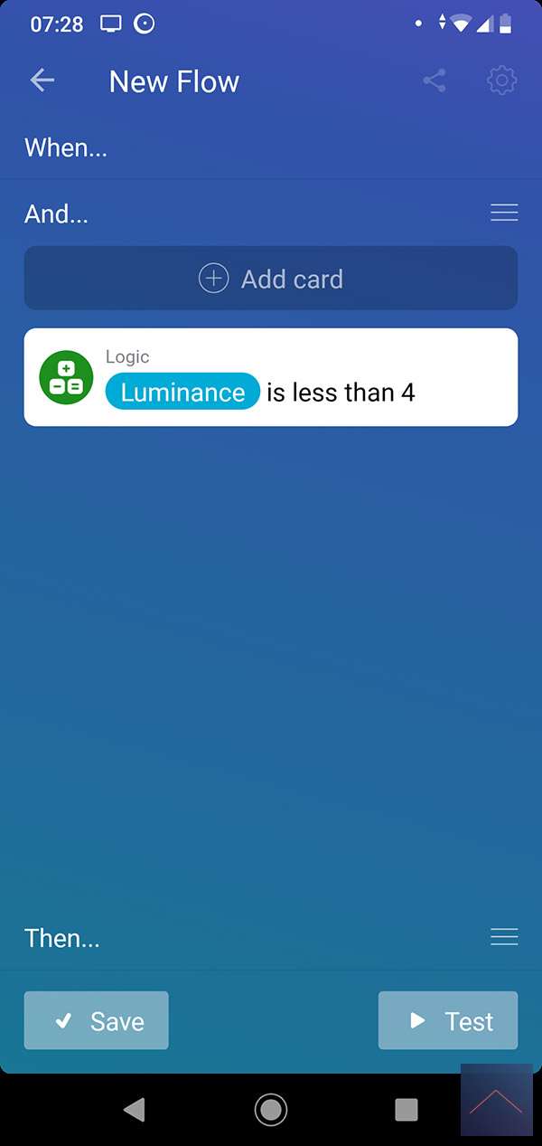 Bij de "en" gaan we kijken naar de lux waarde. Hiervoor gebruik ik de Fibaro Motion sensor deze heeft een lichtmeter ingebouwd. We willen namelijk dat alleen de Shelly aangaat als het donker genoeg is. We nemen als waarde 4.