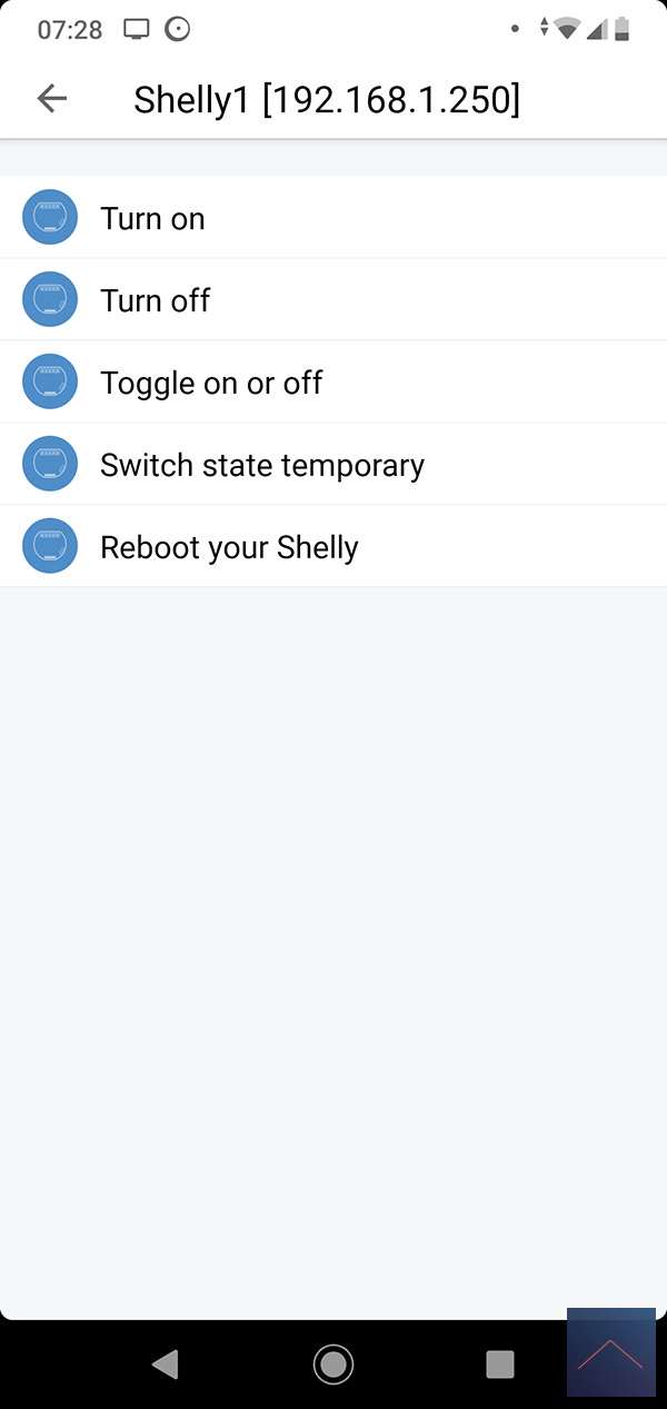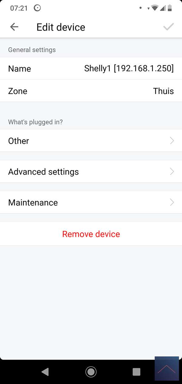 Ik kan hem aan- en uitzetten en er zijn enkele bedieningsmogelijkheden. Goed om te melden is dat de Shelly nog steeds via de cloud communiceert en dat je de Shelly APP kunt blijven gebruiken. Dit kun je uiteraard ook uitzetten.
