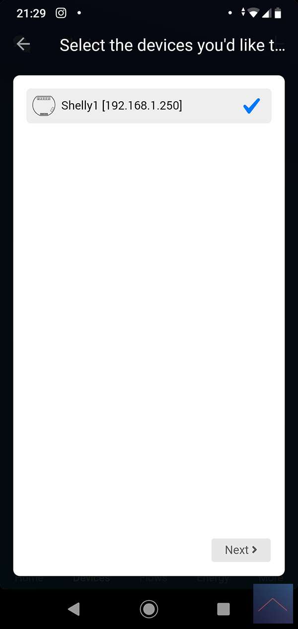De Homey zal gaan zoeken naar de Shelly maar helaas werd hij niet gevonden. Dus heb hem handmatig geprobeerd toe te voegen, maar helaas lukte dit ook niet. Maar de aanhouder wint en na een paar keer gezocht te hebben werd hij gevonden. Heb dus even geduld.
