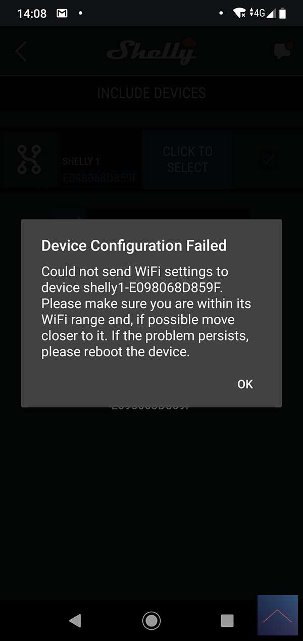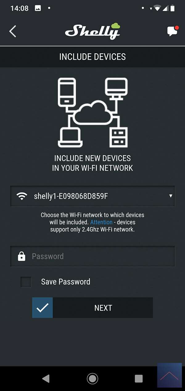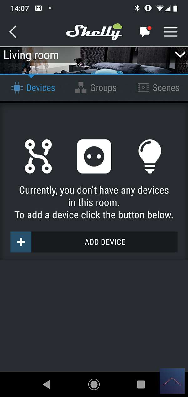 Als we een kamer hebben dan drukken we op "add device" om de Shelly 1 toe te voegen. Hierbij zoekt hij naar de shelly 1 via je mobiel. Hij is dan nog niet verbonden met je eigen netwerk. Om dit voor elkaar te krijgen maakt hij een tijdelijk hotspot aan. Daarmee verbind je telefoon weer mee (het klopt dus dat je even geen internet hebt) om hem vervolgende te configureren voor jouw eigen WiFi netwerk. Zorg dat de Shelly dicht bij je telefoon is.