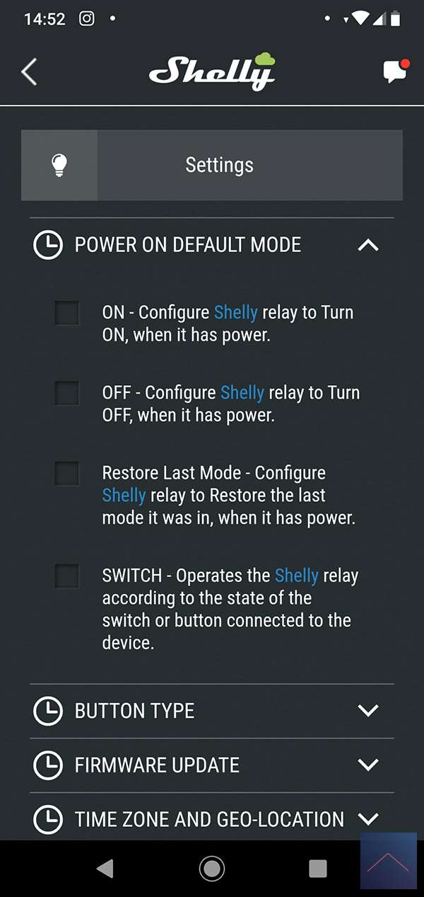 Er zijn een hele sloot aan instellingen beschikbaar. Denk hierbij aan het instellen van het type schakelaar, reboot/reset mogelijkheden en firmware upgrade. De instellingen zijn onderverdeeld in 4 onderdelen: Internet/Security, Actions, Application Setting en Settings.