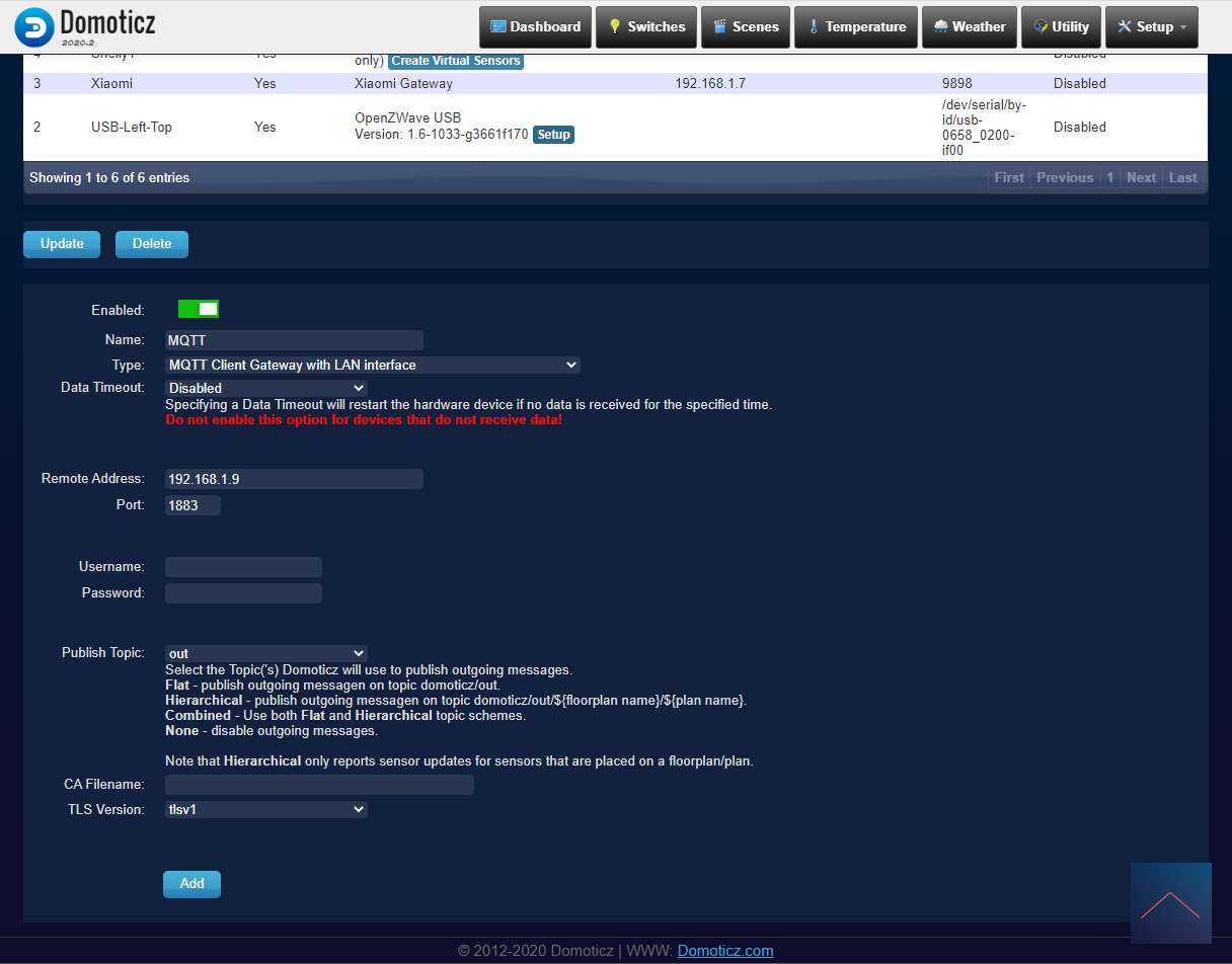 Je kunt nu in de log van domoticz zien of MQTT is opgestart. Nu hebben we MQTT draaien allemaal geweldig natuurlijk maar we willen de Shelly er aankoppelen. Dit is de volgende stap.