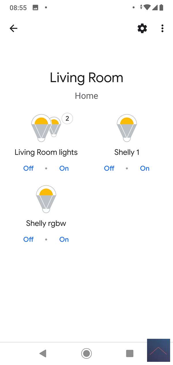 Nadat je bent ingelogd vond hij mijn Shelly RGBW2 en kan ik hem via de Google Home APP bedienen en natuurlijk via stem.