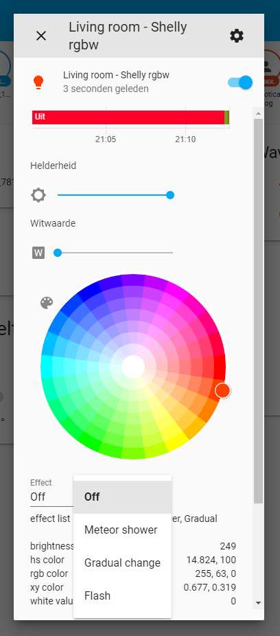 Je krijgt een aan en uit knop, dimfunctie en je kunt alle kleuren van de regenboog selecteren. Er is zelfs een optie aanwezig om de Effecten te gebruiken (Meteor shower, Gradual change, Flash).