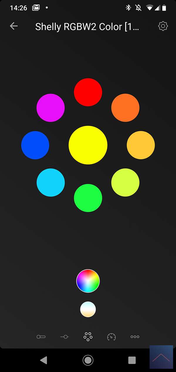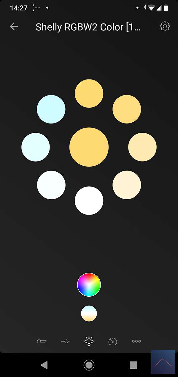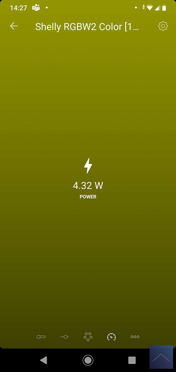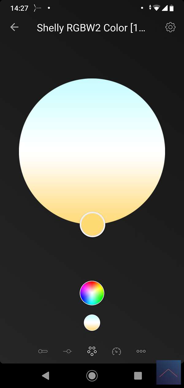 Je krijgt een aan- en uit schakelaar voor zowel de witte- als RGB-kleuren. Je kunt alle kleuren van de regenboog maken met de RGB led's en met de witte kun je de temperatuur bepalen (blauwer of geler). Tevens kun je het totaal en huidige verbruik inzien.