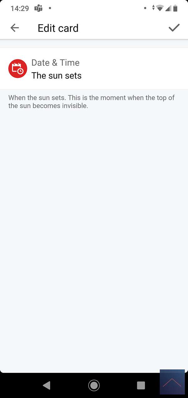 We willen graag dat als de zon onder gaat, en ik niet thuis ben, dat dan de Shelly wordt aangezet.