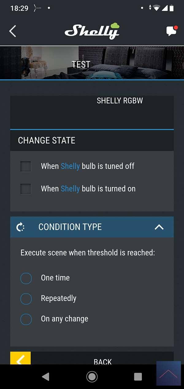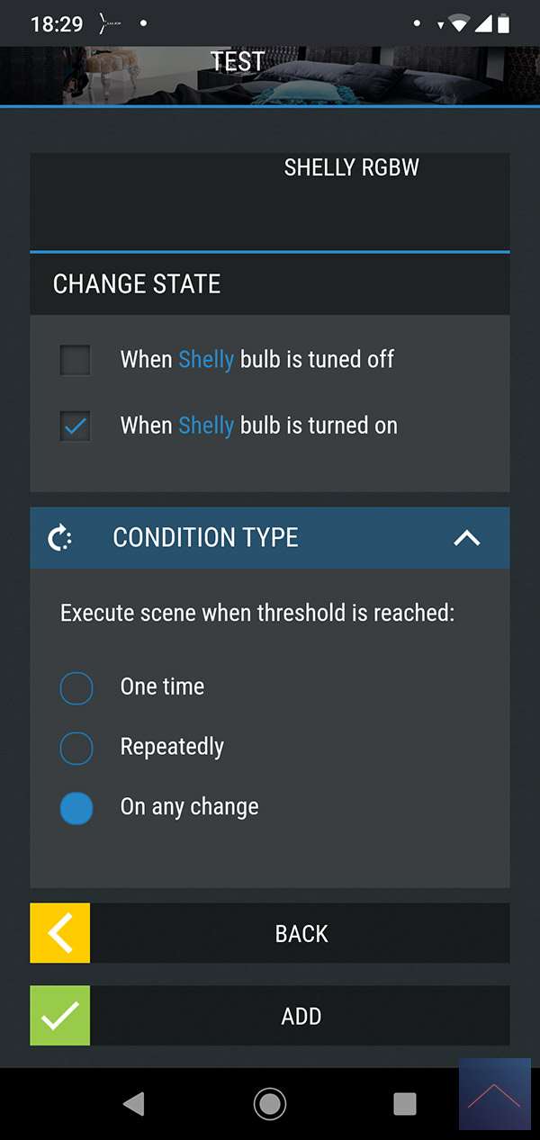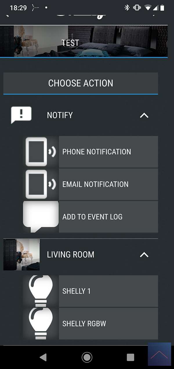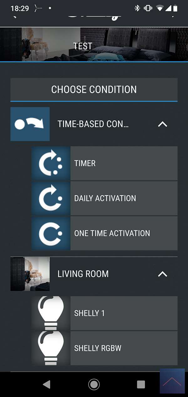De bovenstaande mogelijkheden zijn natuurlijk prima als je iets simpel aan of uit wilt zetten. Maar de kracht van een smart home systeem is natuurlijk dat je dingen echt kan automatiseren. Je wilt bv met 1 knop in te drukken al je lampen aanzetten. Om dit mogelijk te maken is er een scene optie. Je kunt verschillende condities als trigger gebruiken en verschillende voorwaarden waar aan hij moet voldoen.