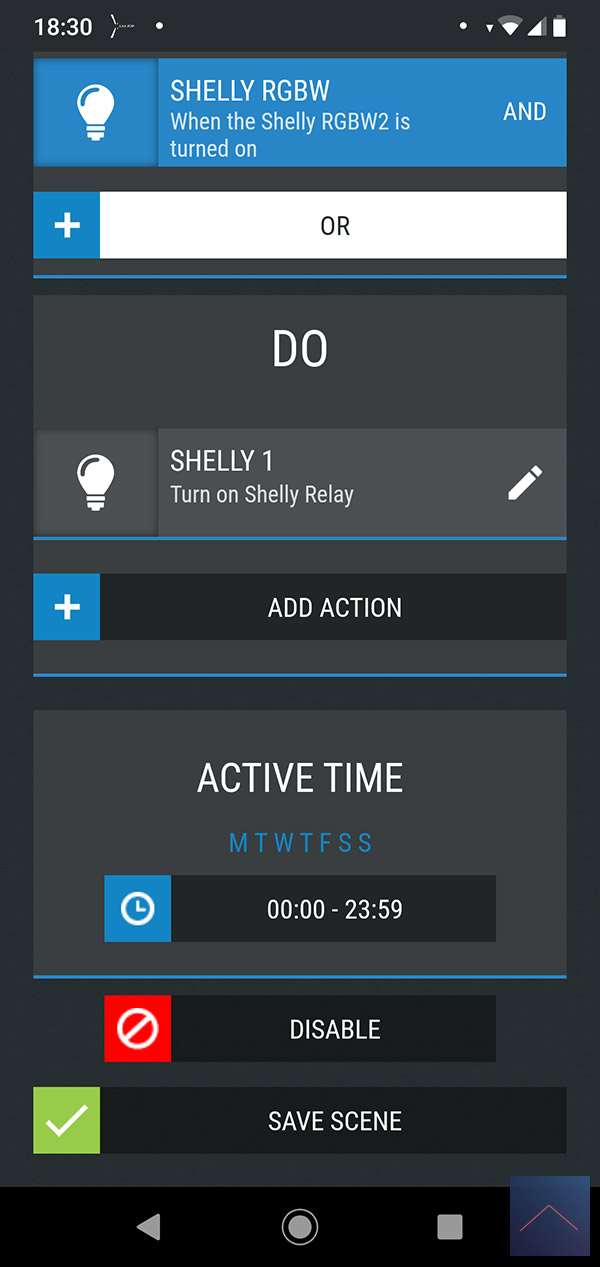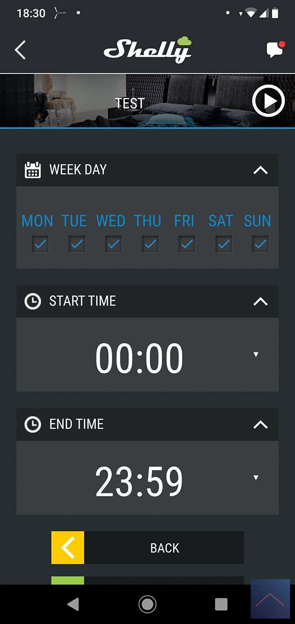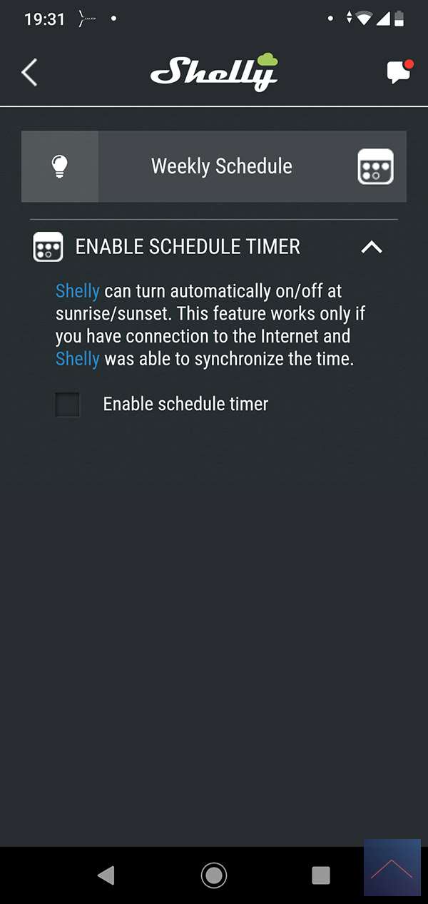 De Shelly heeft als het ware een kleine computer ingebouwd. Hierdoor is hij eigenlijk een kleine smart home controller. Dus het maken van regels kun je via de module zelf doen, uiteraard wel met de APP. Er zijn 3 verschillende types (timer, weekly schedule en scene's). We gaan eerst naar de timer kijken.