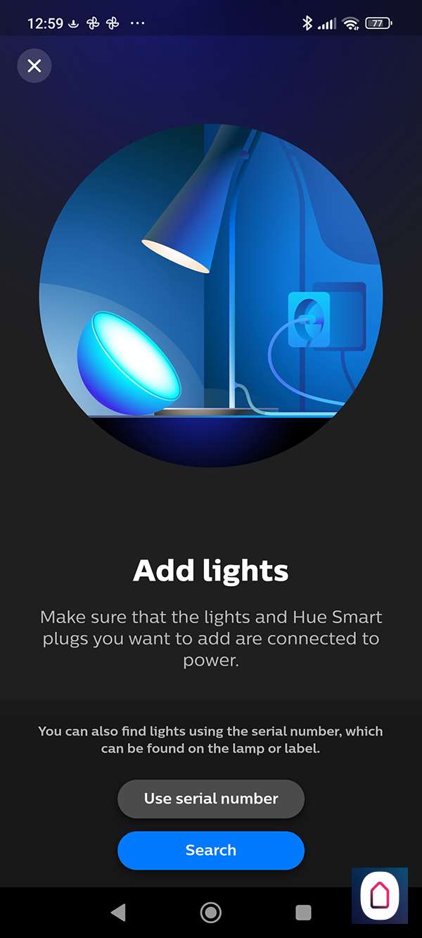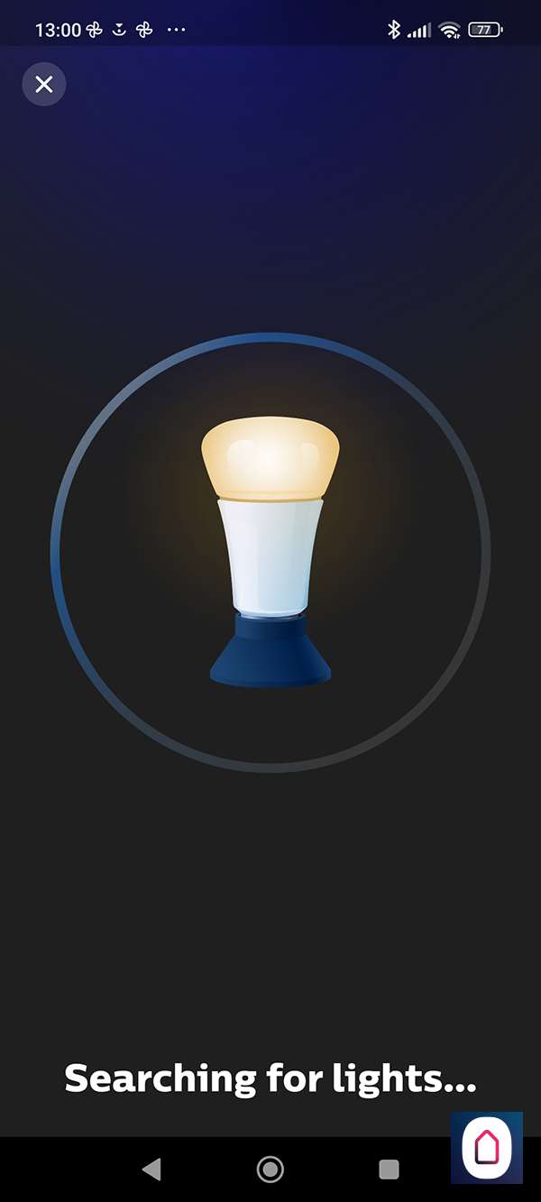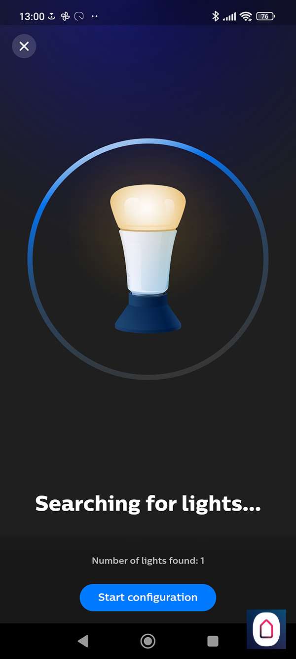 Nu loggen we in op de HUE APP en gaan vervolgens naar de instellingen (radartje bovenin). We drukken vervolgens op "lampen configuratie" en hierna op toevoegen. Nu voorzien we de LED-strip van stroom en drukken op zoeken. De lamp knippert en ik zie dat hij gevonden wordt.