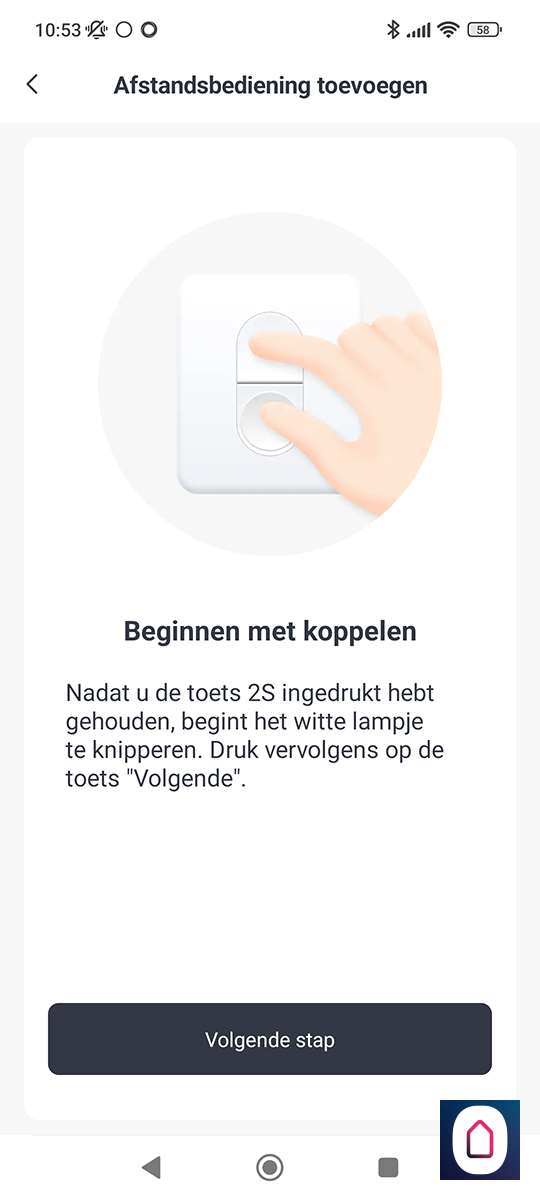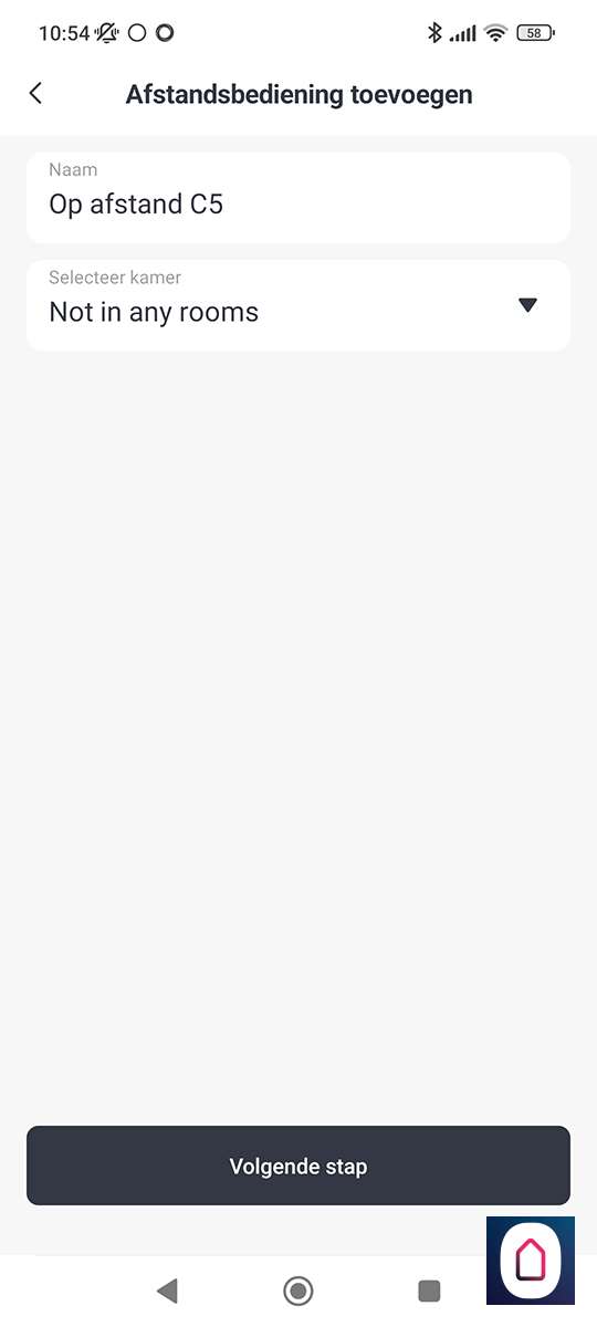 Voordat we het automatisering gedeelte gaan bekijken voegen we nog even de Remote toe. Met deze knop kun je een scene starten. Dit gaat weer door naar het plusje te gaan als je het lipje verwijderd komt hij na enkele seconden bovenin beeld te staan. We selecteren hem vervolgens en moeten de 2 knoppen te gelijk indrukken. Na enkele seconden wordt hij toegevoegd, appeltje eitje.