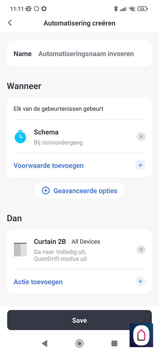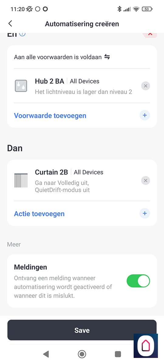 Dit zijn enkele voorbeelden. Je kunt je voorstellen dat als je wat meer apparaten hebt je nog een mooiere automatisering kunt maken. Nog 1 kleine toevoeging: je kunt ook meerdere startpunten/triggers instellen. Dus als je als automatisering hebt dat je thuis komt de gordijnen dicht moeten, en je wilt dat hij ook om 21.00 uur dicht gaat, hoe je hiervoor geen 2 automatiseringen te maken.