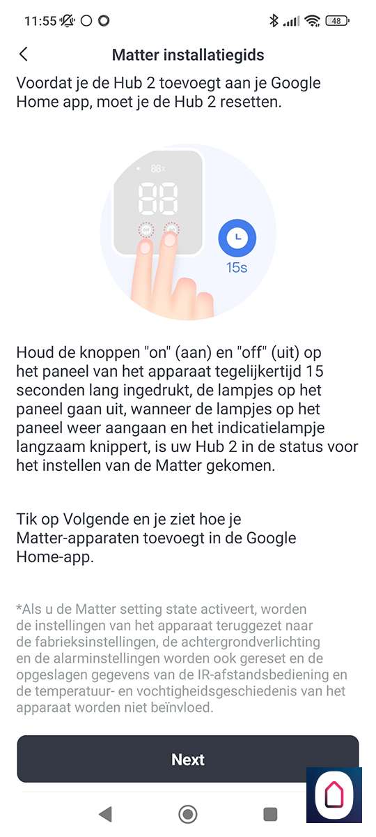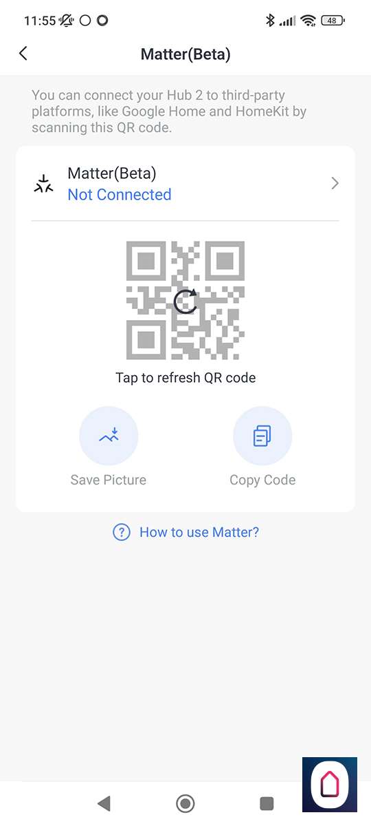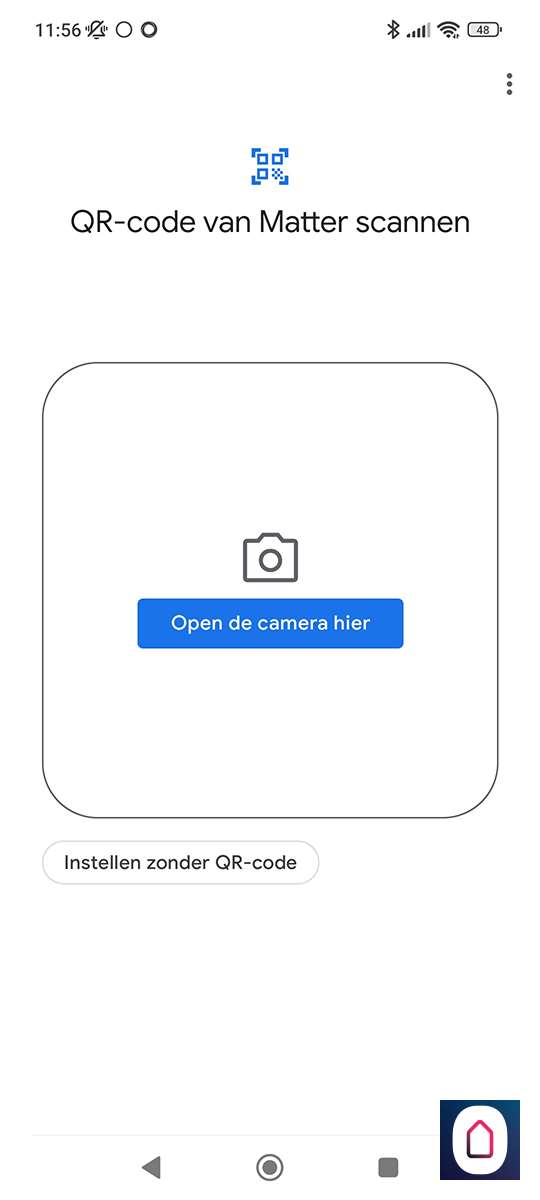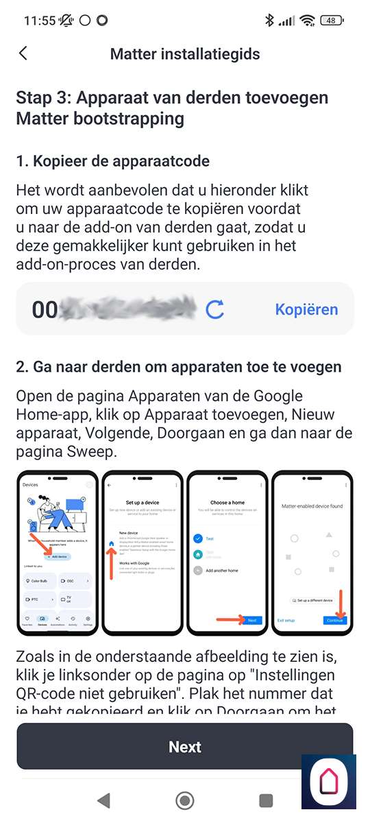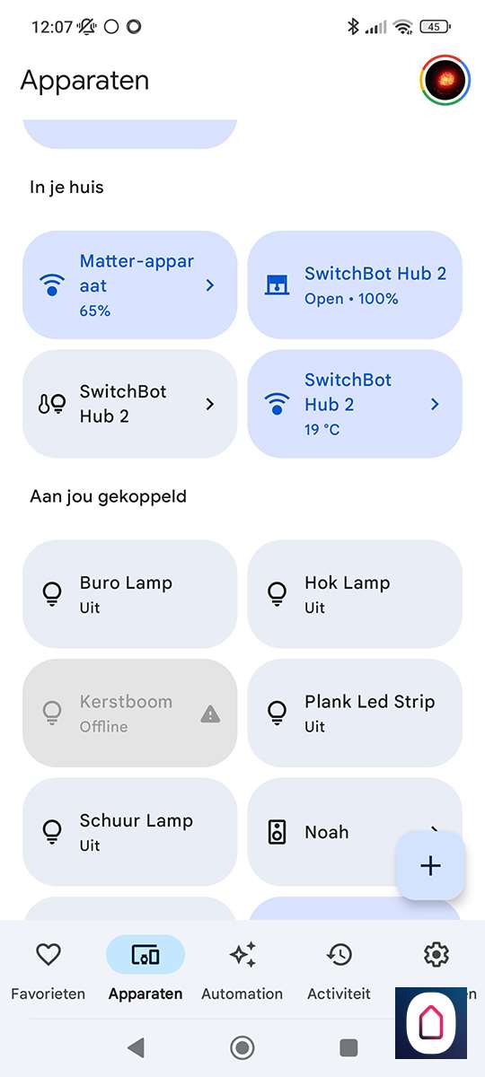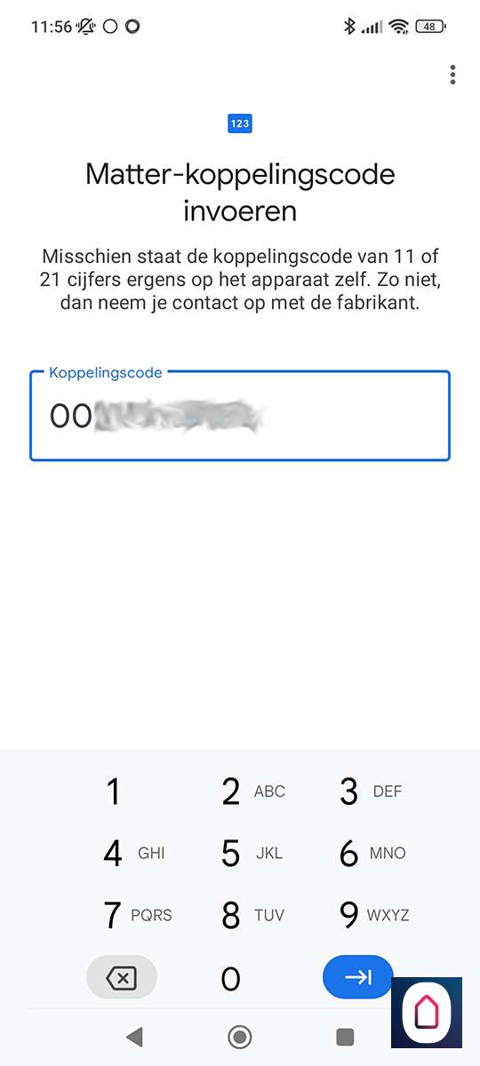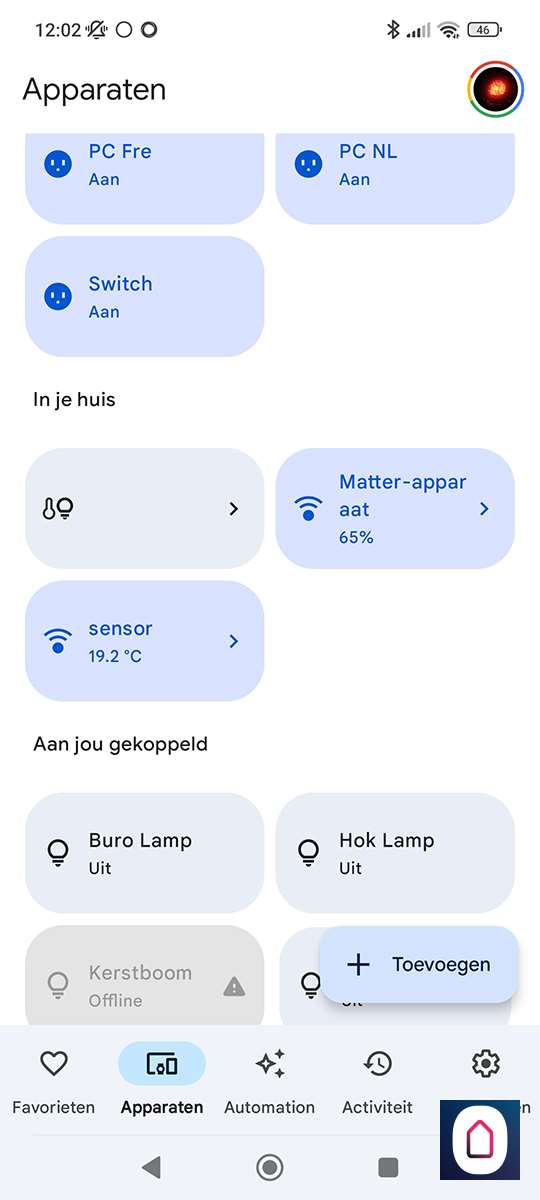 Het komt er op neer dat je de hub koppelt aan een matter apparaten. In ons geval de GH. Als we het matter gedeelte hebben in gesteld dan kunnen we naar de Home APP van Google. Gaan naar onze apparaten en drukken op " toevoegen", apparaat dat geschikt is voor matter en voren de koppel code in.