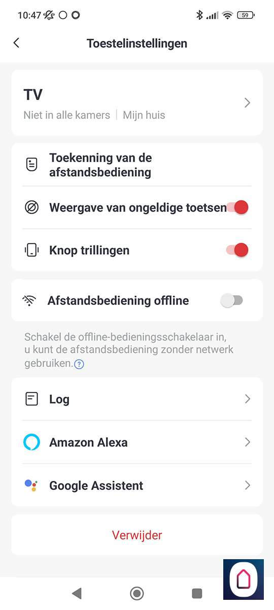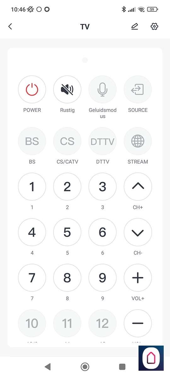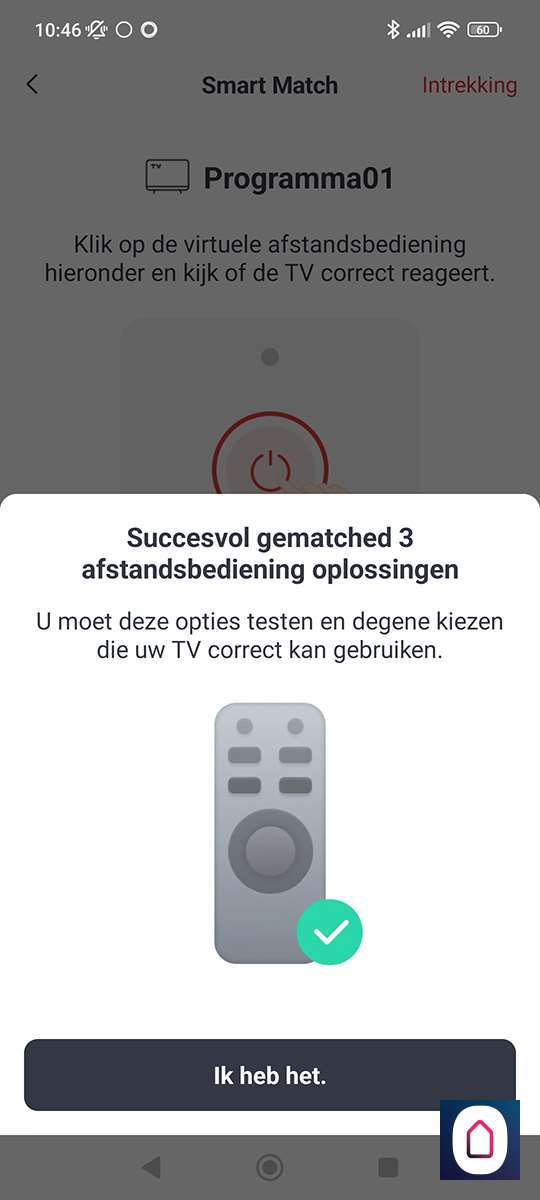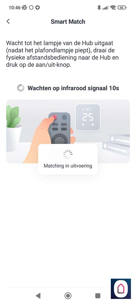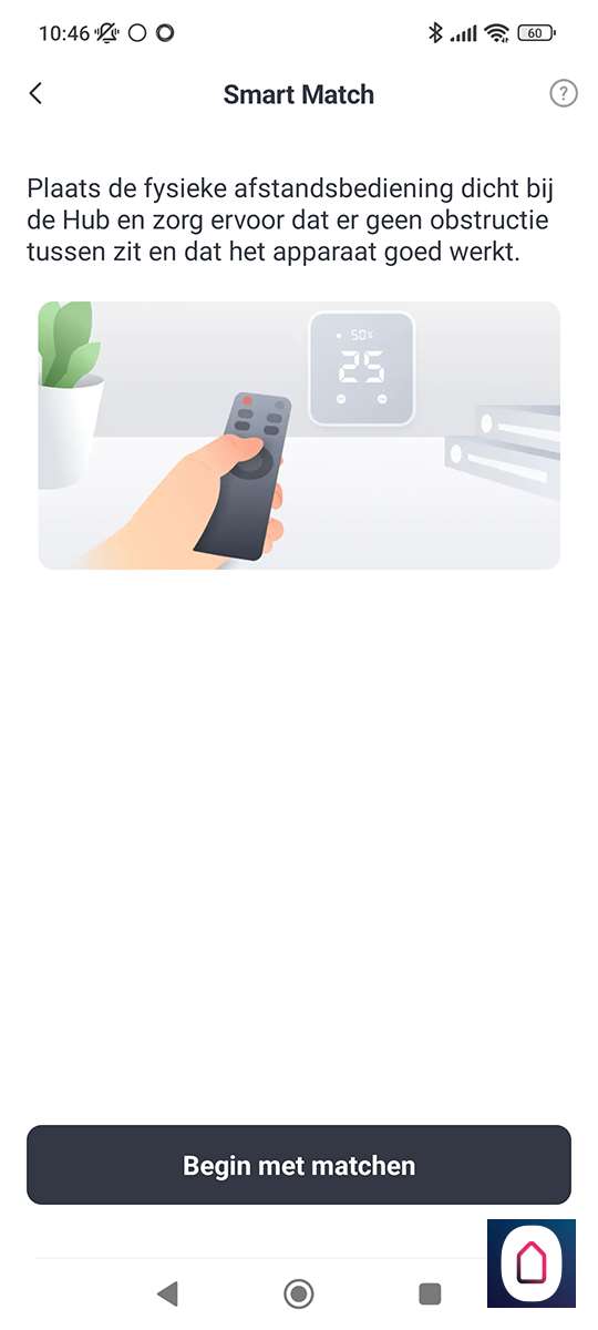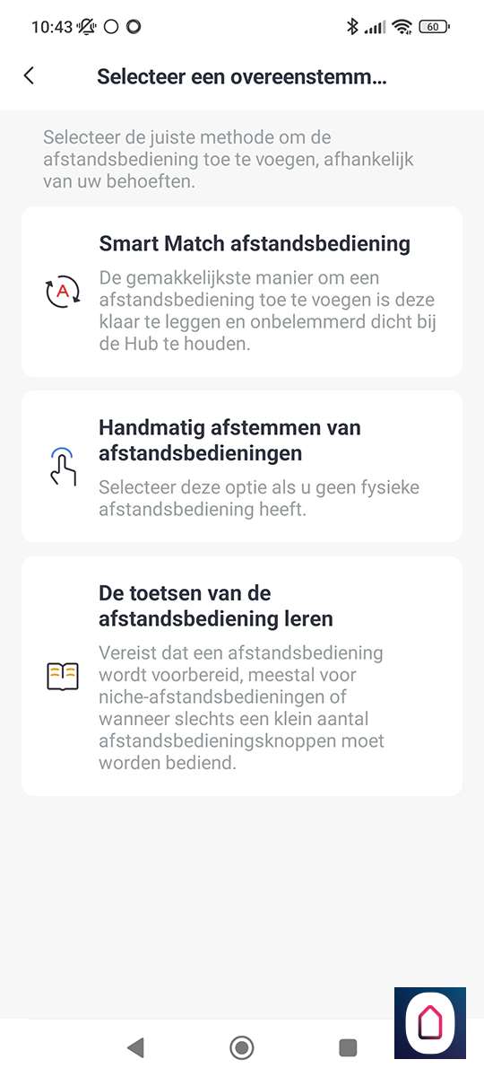 De hub heeft een ingebouwd IR sensor. Hiermee kun je bv je old skool televisie aan sturen. We gaan er eentje toevoegen om te kijken hoe dit werk. Als we de toevoegen knop indrukken dan krijgen we een selectie aan type apparaten en de mogelijkheid om zelf een apparaat te leren. In ons geval selecteren we televisie en de optie Smart Match omdat we de afstandsbediening in de buurt hebben. Je kunt vervolgens hem testen of je televisie reageert.